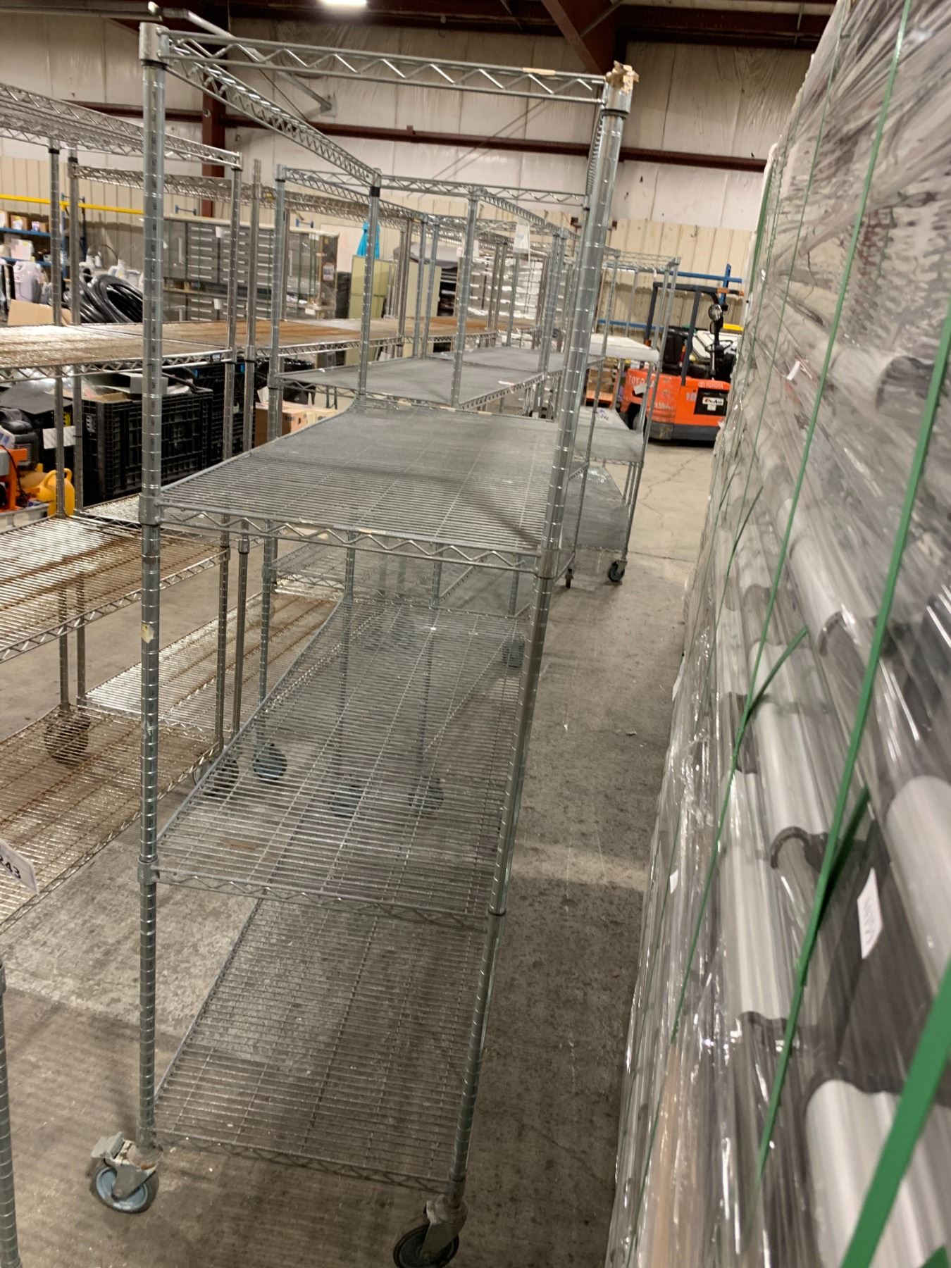 METRO STYLE CHROME FINISH 3 TIER MOBILE SHELF RACK-APPROX. 5FT ACROSS X 2FT WIDE X 6 1/2FT TALL
