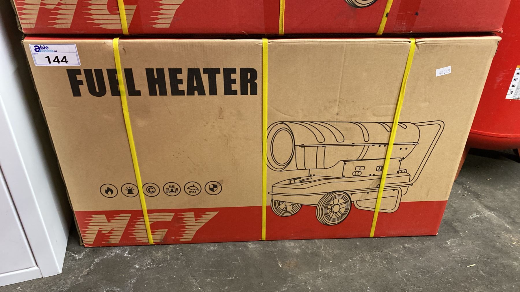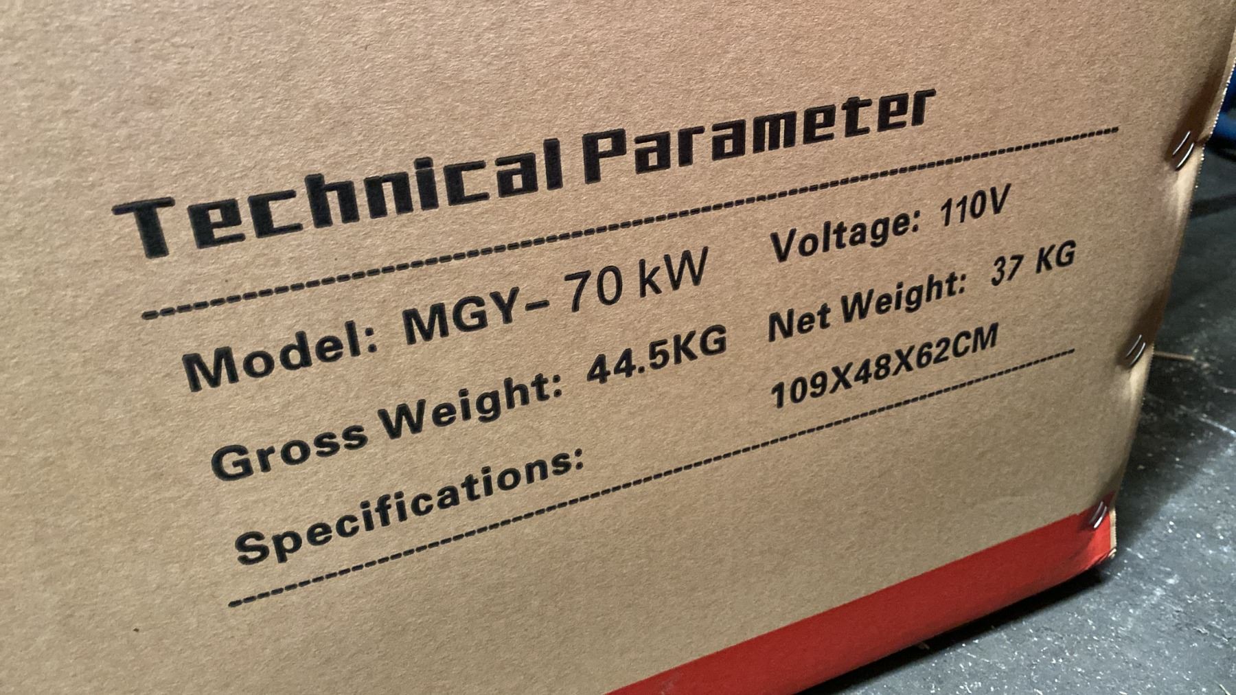 MGY-70KW, 110V PORTABLE FUEL HEATER *IN BOX* BOX MEASURES APPROX 43"L X 19"D X 25"H APPROX WEIGHT: 98LBS