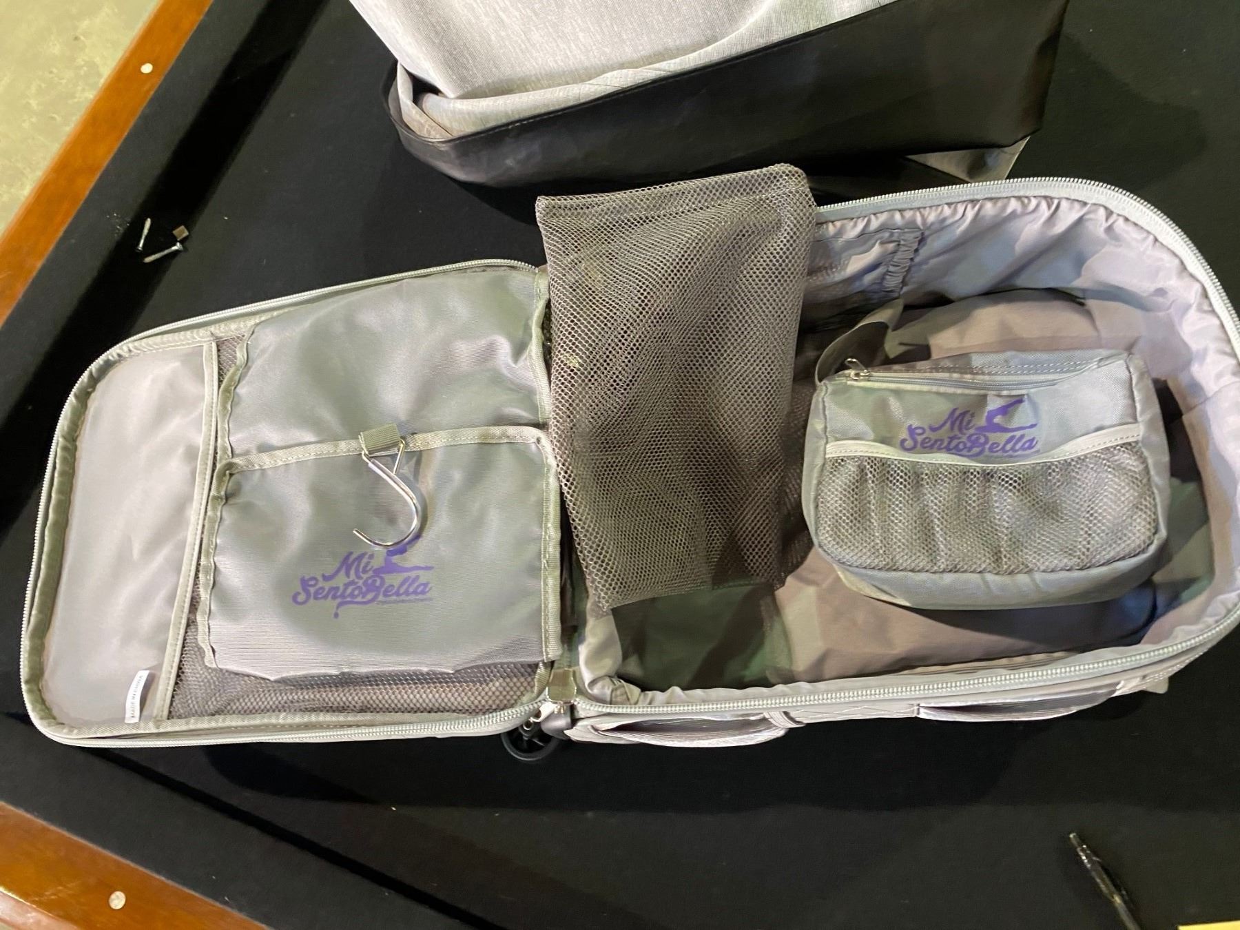 MI SENTOBELLA CARRY ON SUITCASE WITH WHEELS AND ORGANIZERS INSIDE, GREY QUILTED LOOK BRAND NEW IN BOX