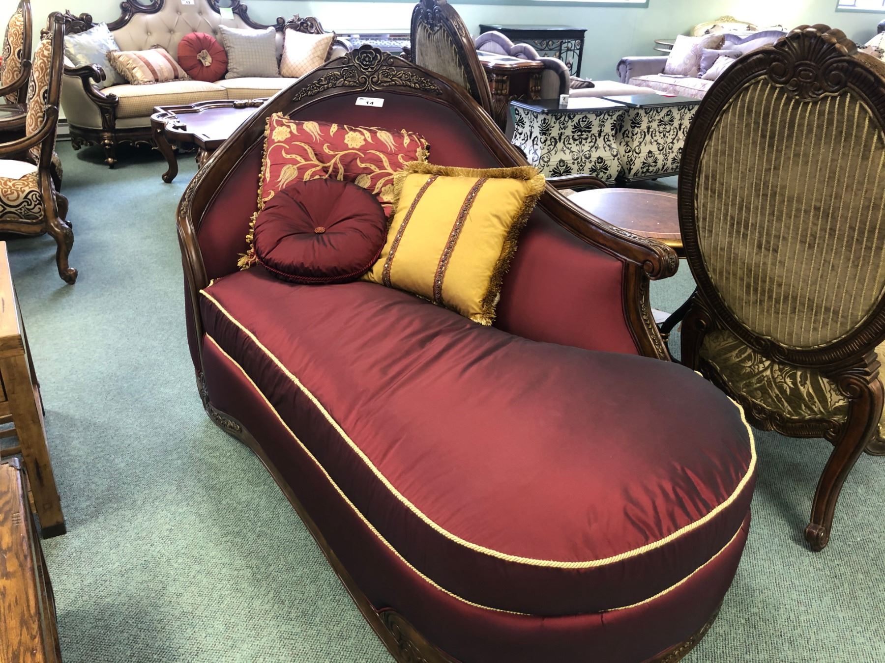 MICHAEL AMINI OPPULANTE FORMAL CHAISE LOUNGE WITH THROW CUSHIONS. RETAIL $4,466.00
