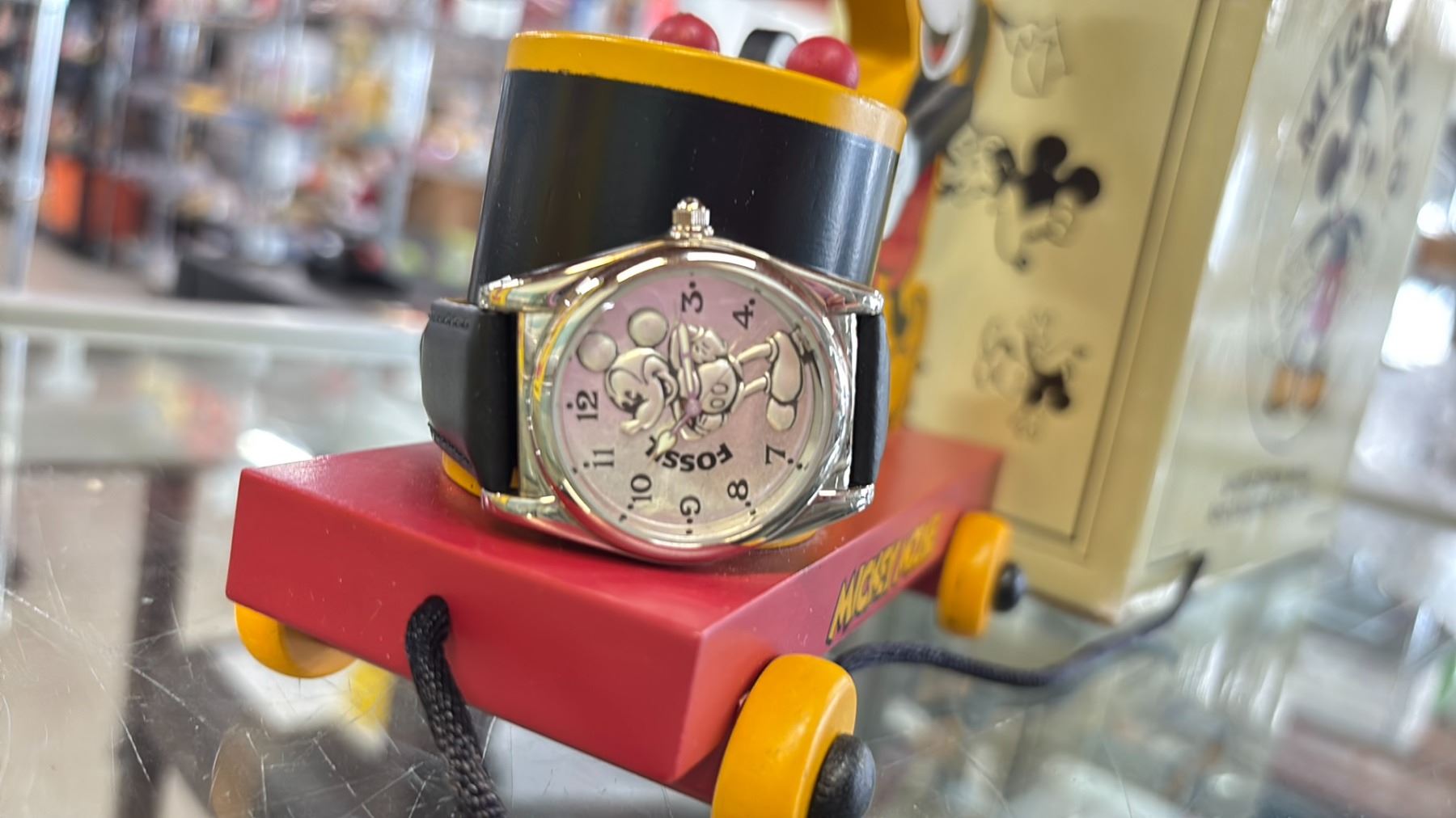 MICKEY & CO LIMITED EDITION FOSSIL WATCH & COLLECTIBLE WOOD TOY