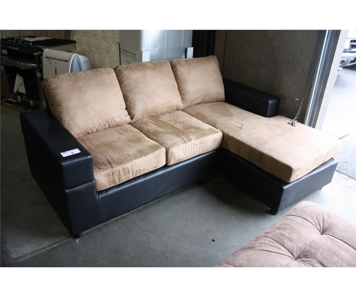 MICROFIBRE AND BLACK LEATHER 3 SEAT SOFA WITH LOUNGER