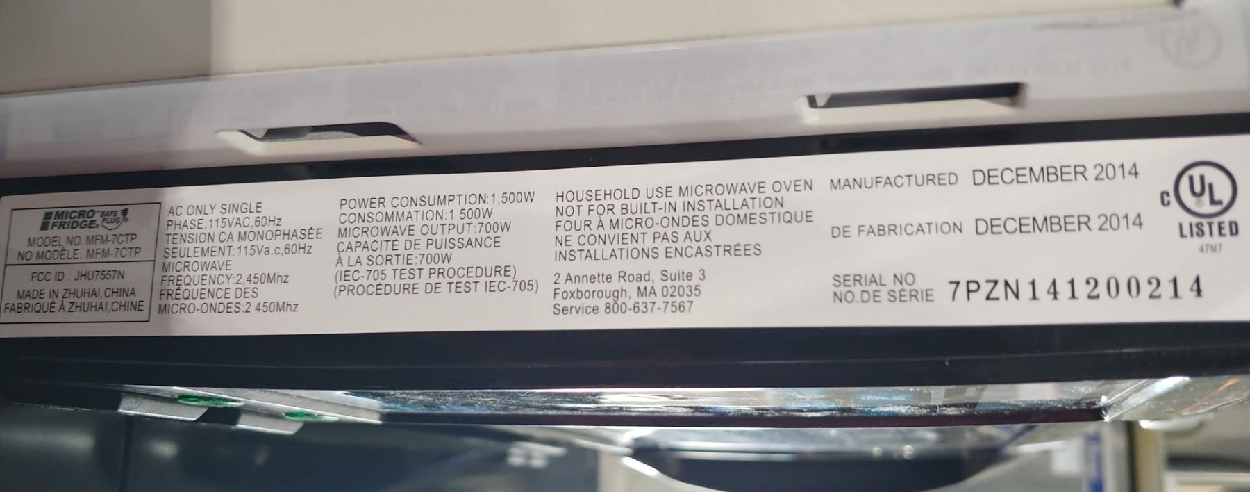 MICROFRIDGE MINI FRIDGE (MODEL 3.1MF4R) WITH ATTACHED MICROWAVE (MODEL MFM-7CTP)