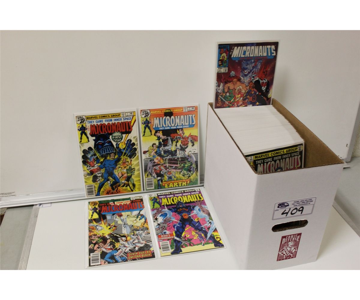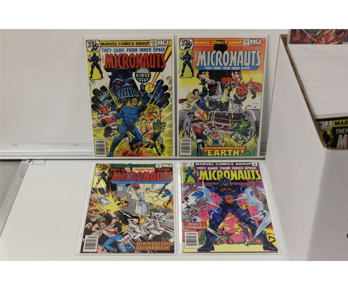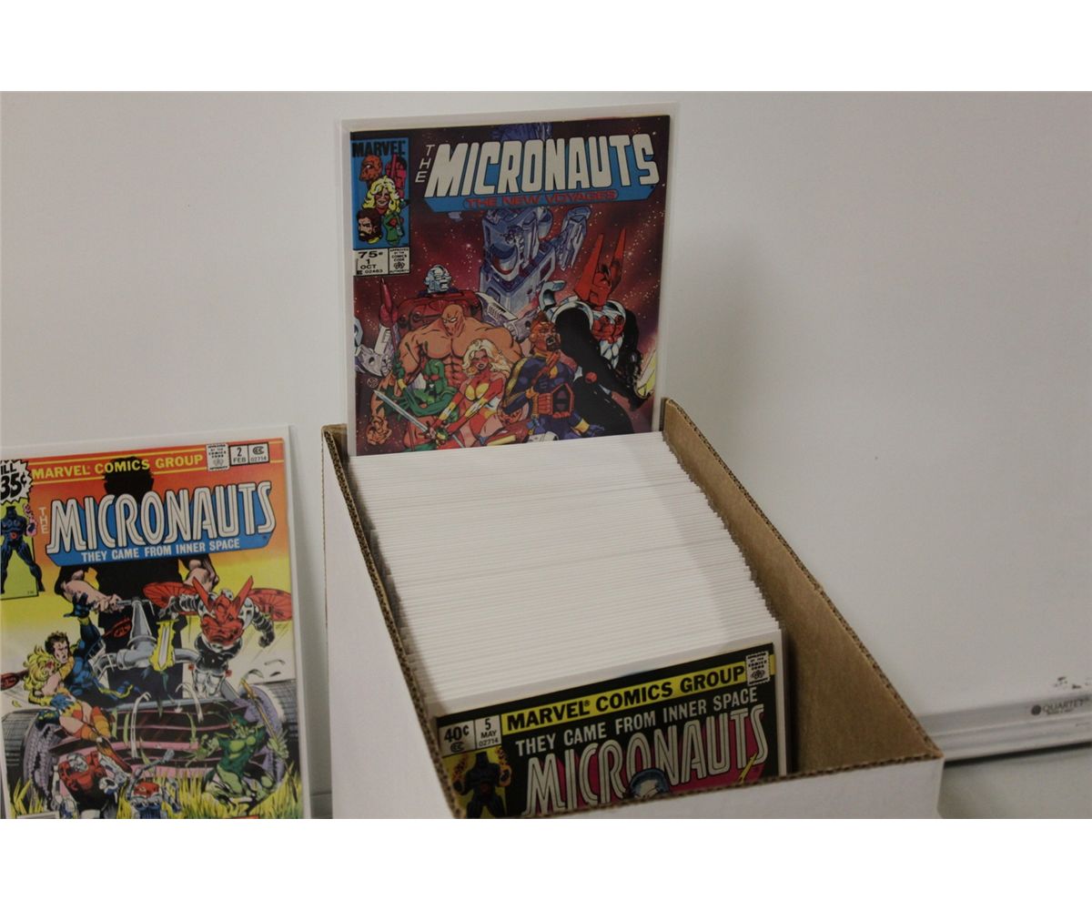 MICRONAUTS COMPLETE & HIGH GRADE SERIES. #1-58 (1979). ONLY MISSING #59 INCLUDES ANNUALS. #1-2 + NEW VOYAGES #1-20 (1984) & SPECIAL EDITION #1-4. 84 TOTAL BOOKS. HIGH GRADE AVERAGE, SHARP, GORGEOUS SETS. MANY NM COPIES.