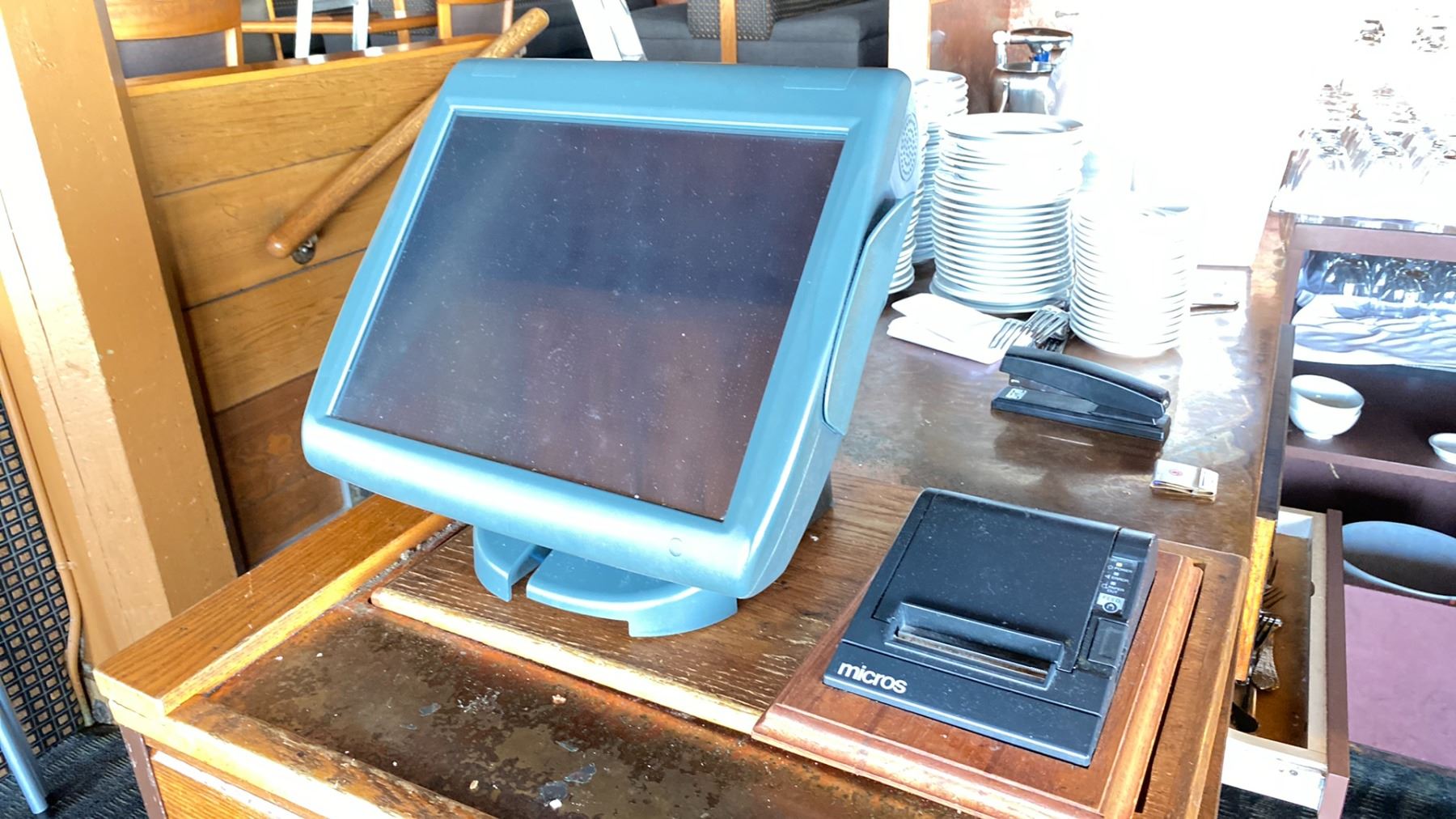MICROS POS SYSTEM (MOTHERSYSTEM) HP MAIN HARD DRIVE, KEYBOARD, DELL MONITOR, DLINK FOR MICROS, HP LASER 1020 PRINTER. INCLUDES 4 MIROS ENTRY SCREENS AND 5 MICROS PRINTERS. INCLUDES JET, INCLUDES RESERVATION DESK IPAD WITH LOCKING MOUNT.