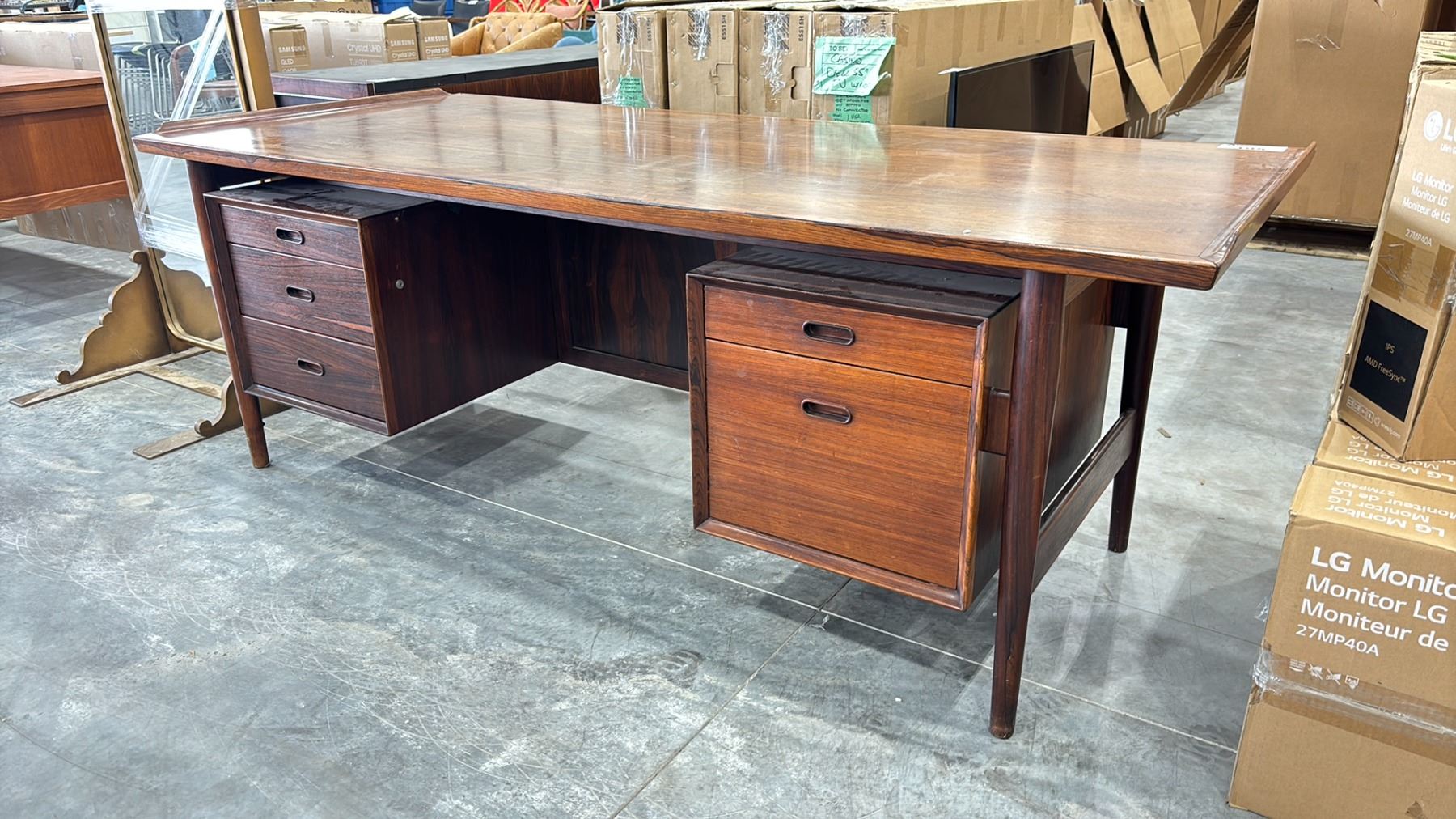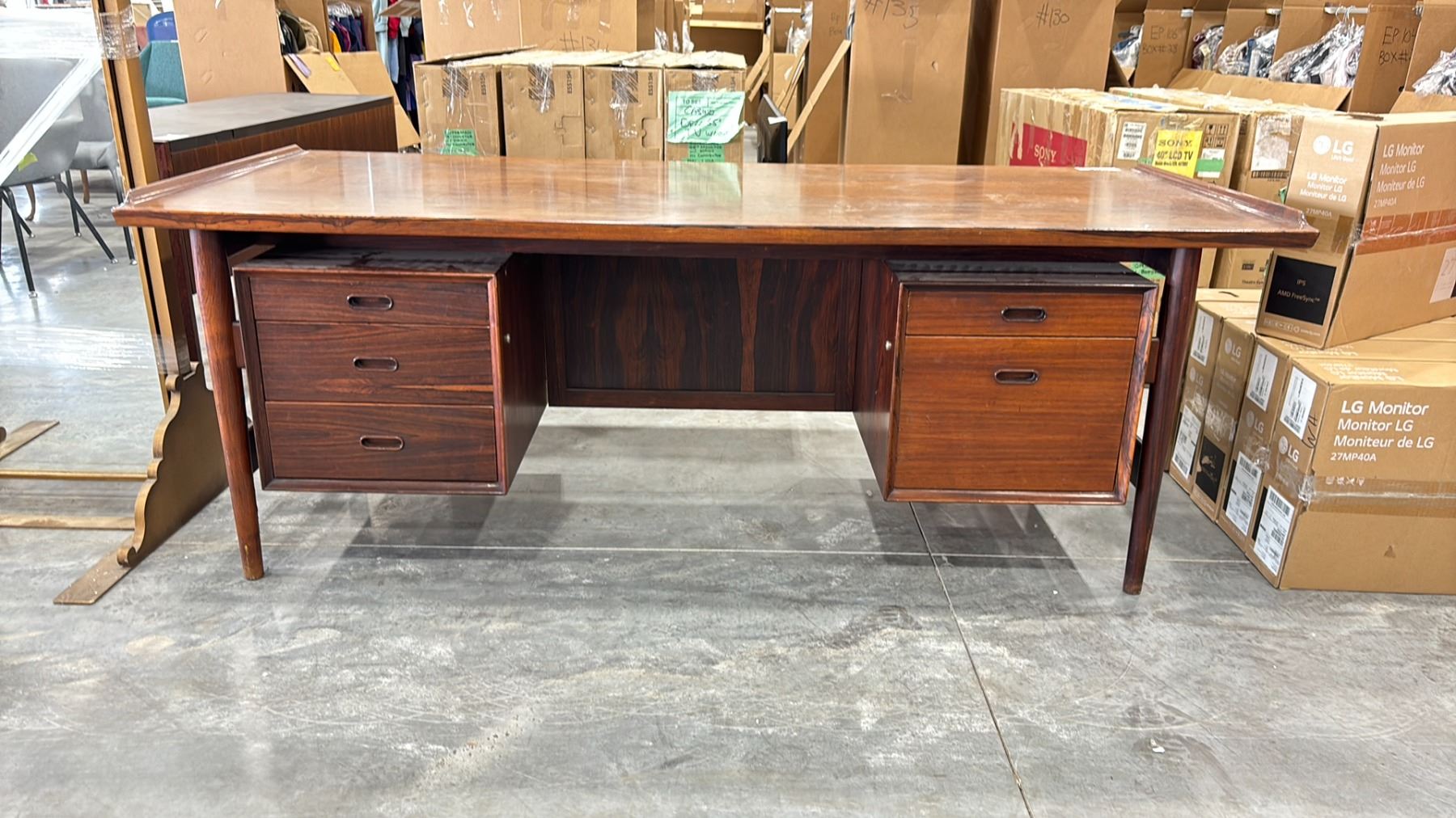 MID CENTURY DANISH MODERN ROSEWOOD DESK (MADE IN DENMARK) - APPROX. 80"W X 35"D X 28.5"H