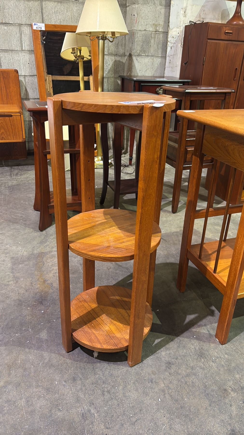 MID CENTURY DANISH MODERN TEAK 3-TIER ROUND PLANT STAND 12" X 32"
