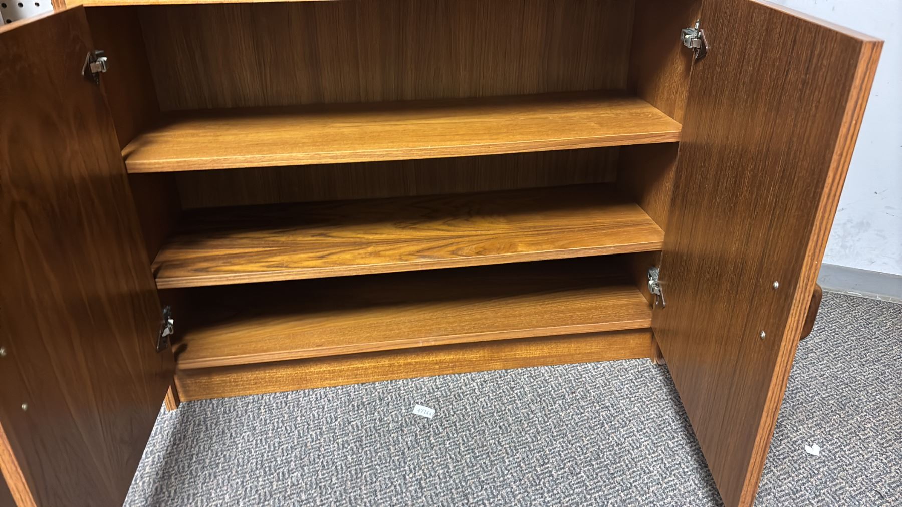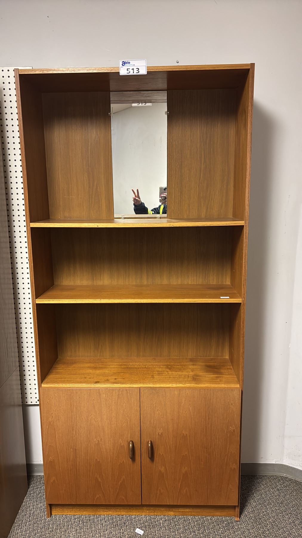 MID CENTURY DANISH MODERN TEAK BOOKSHELF WITH BOTTOM CUPBOARD 35.5" X 12" X 77"