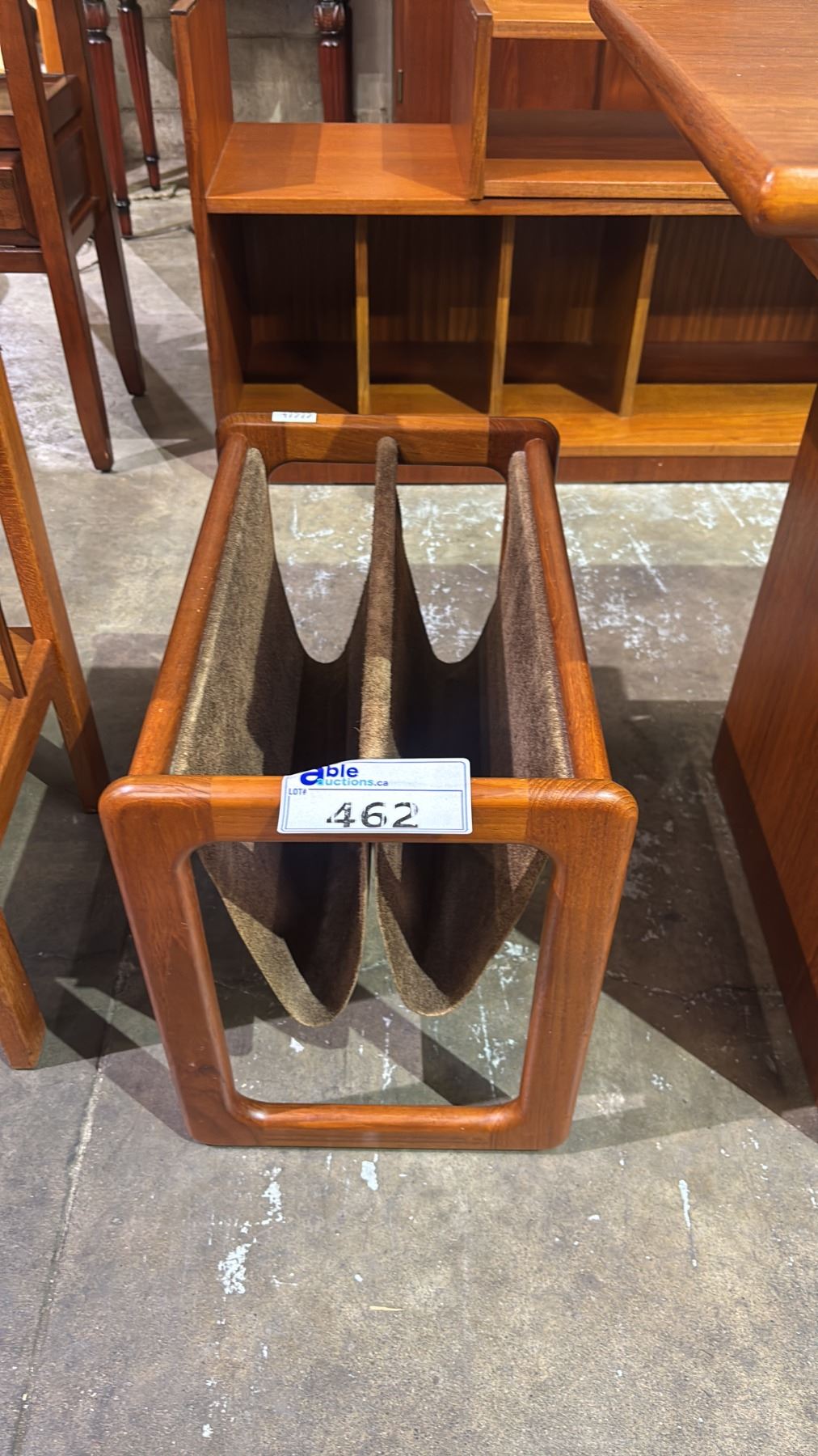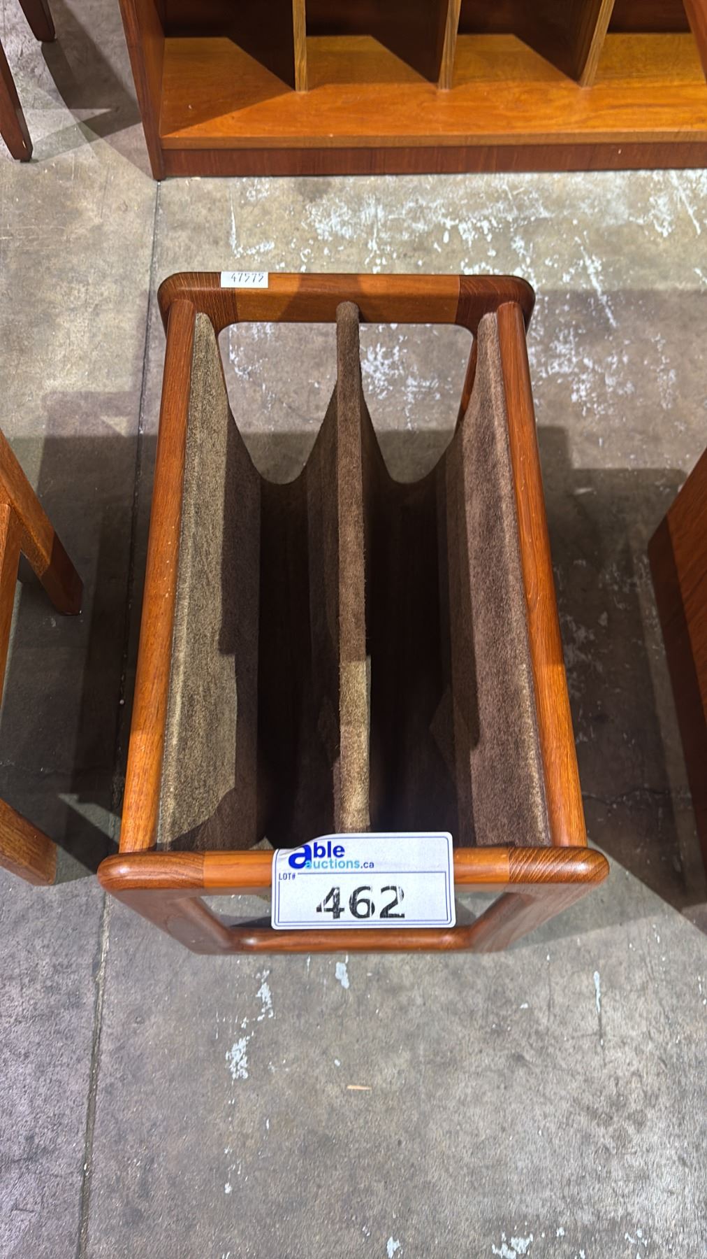 MID CENTURY DANISH MODERN TEAK & LEATHER MAGAZINE STAND