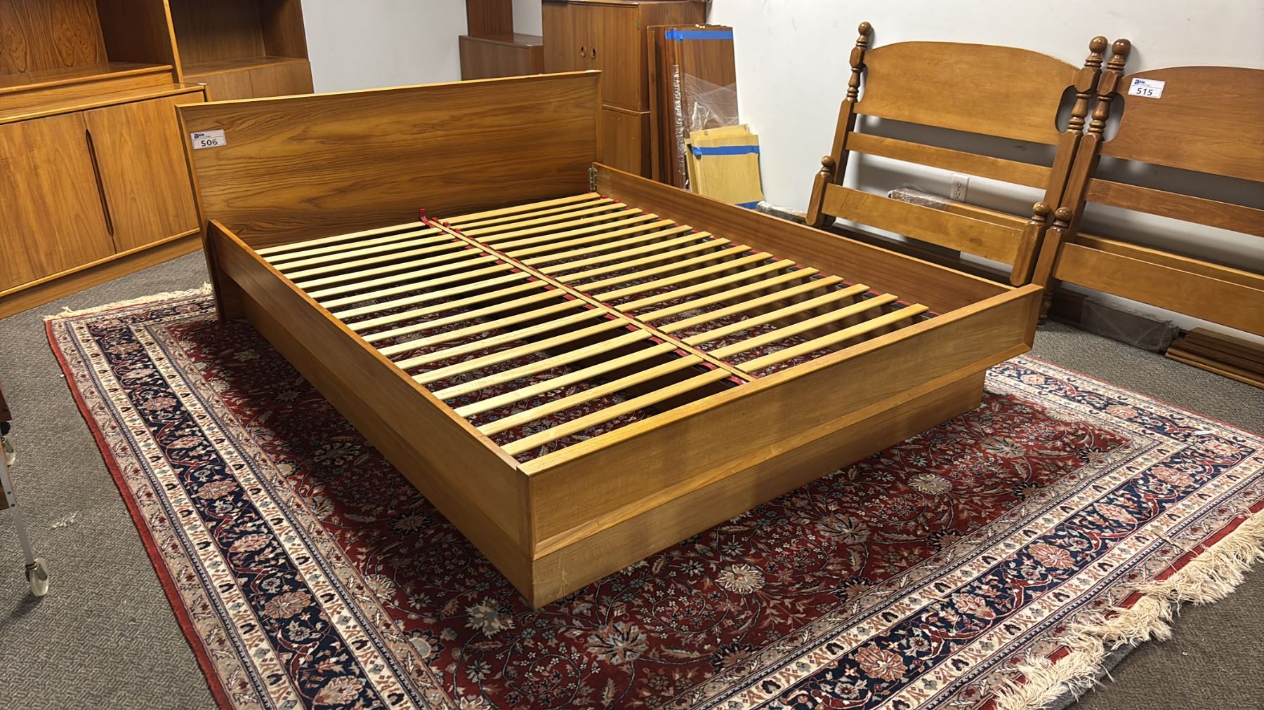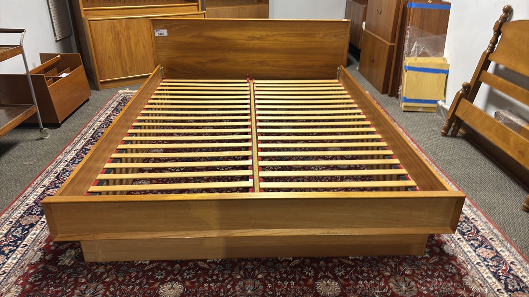 MID CENTURY DANISH MODERN TEAK QUEEN SIZE PLATFORM BED 84" X 63"