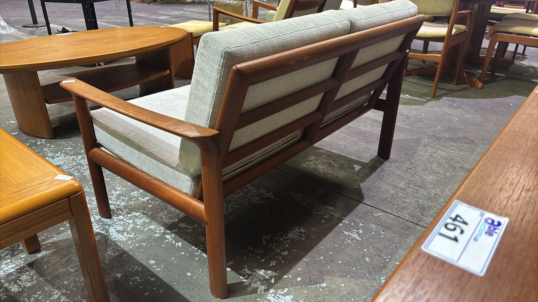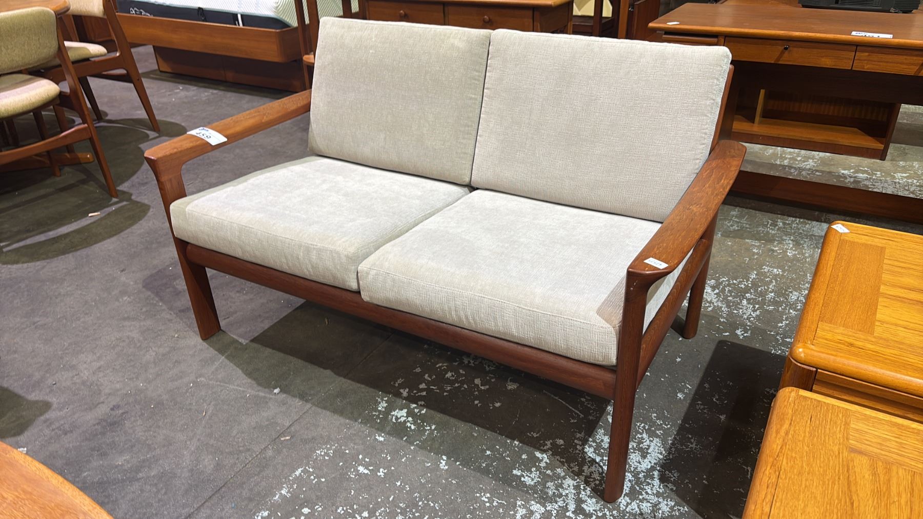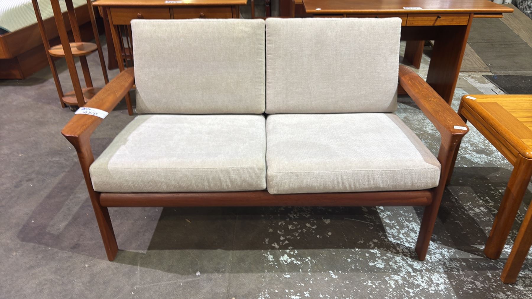 MID CENTURY DANISH MODERN TEAK UPHOLSTERED LOVESEAT
