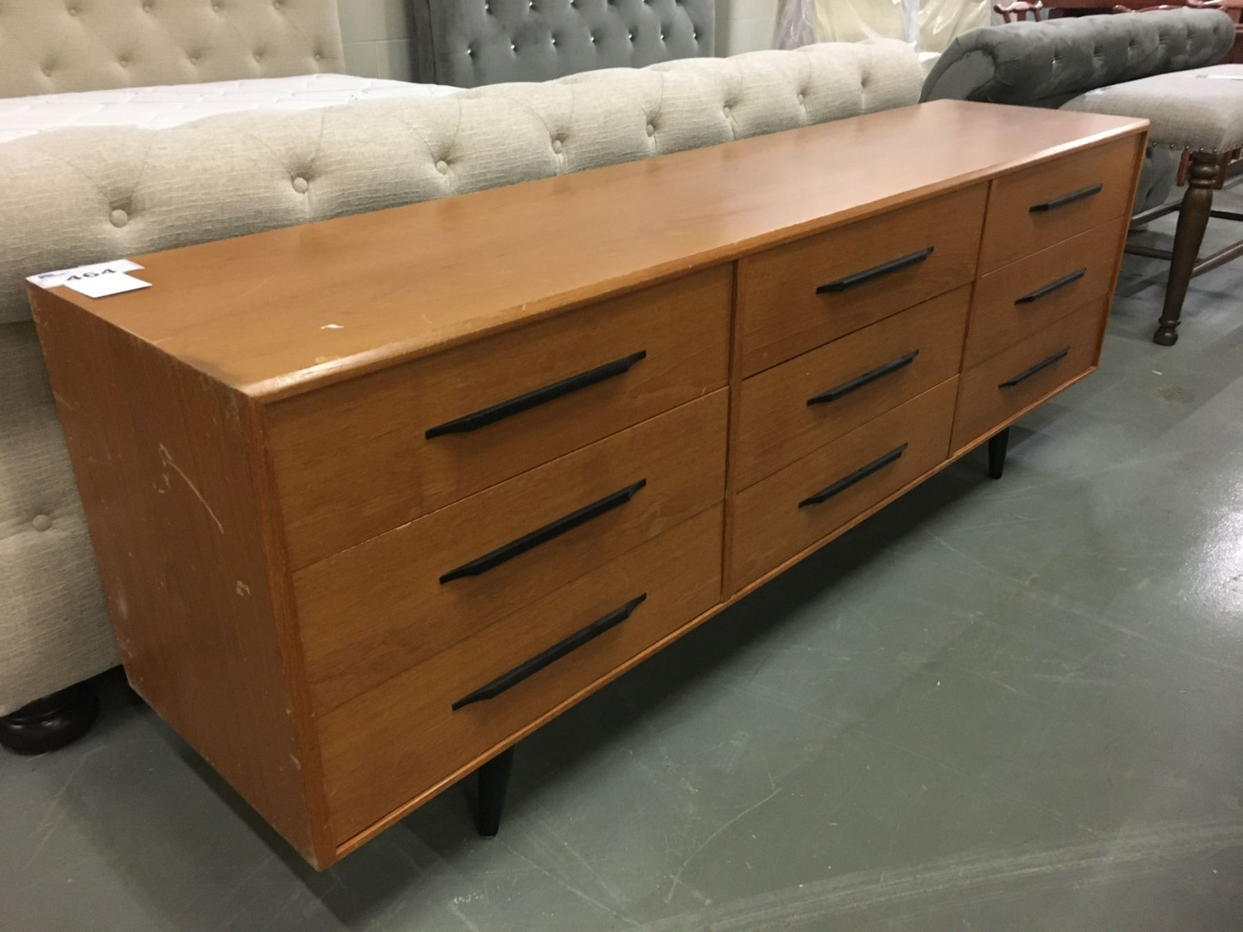 MID CENTURY MODERN TEAK 9 DRAWER LOW BOY BEDROOM DRESSER