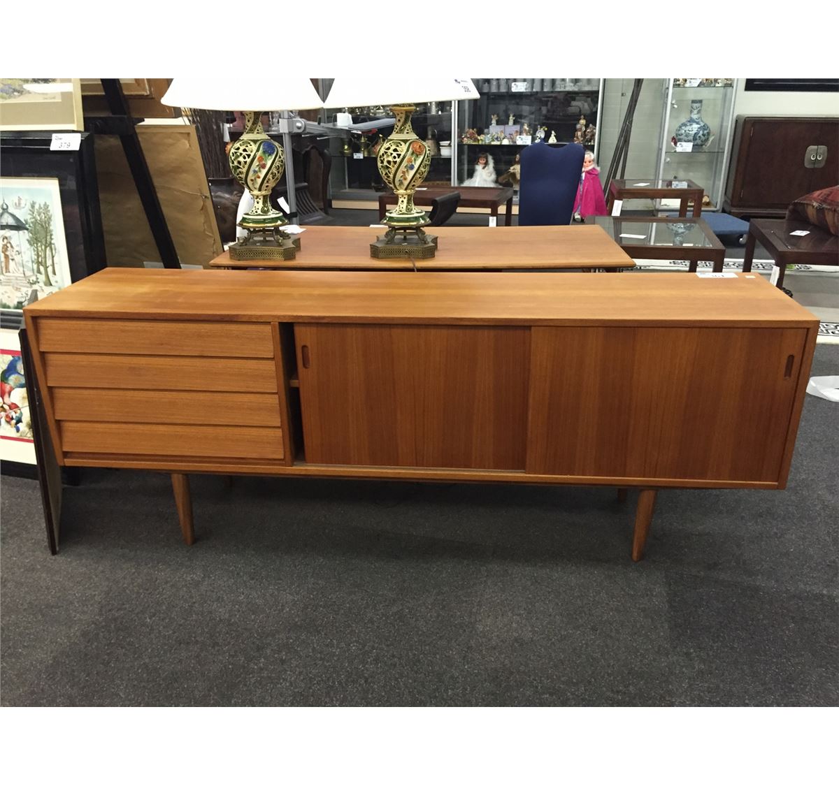 MID CENTURY MODERN TEAK CABINET 74.5"W X 17"D X 28"H