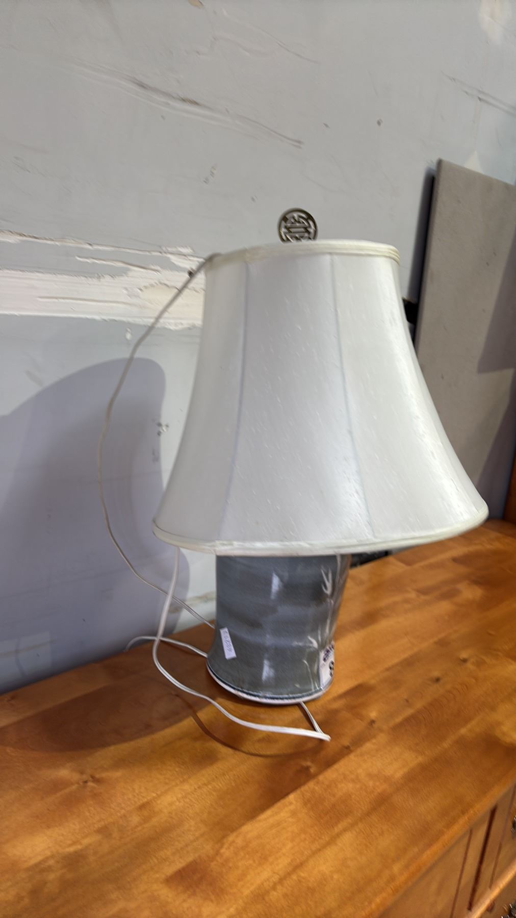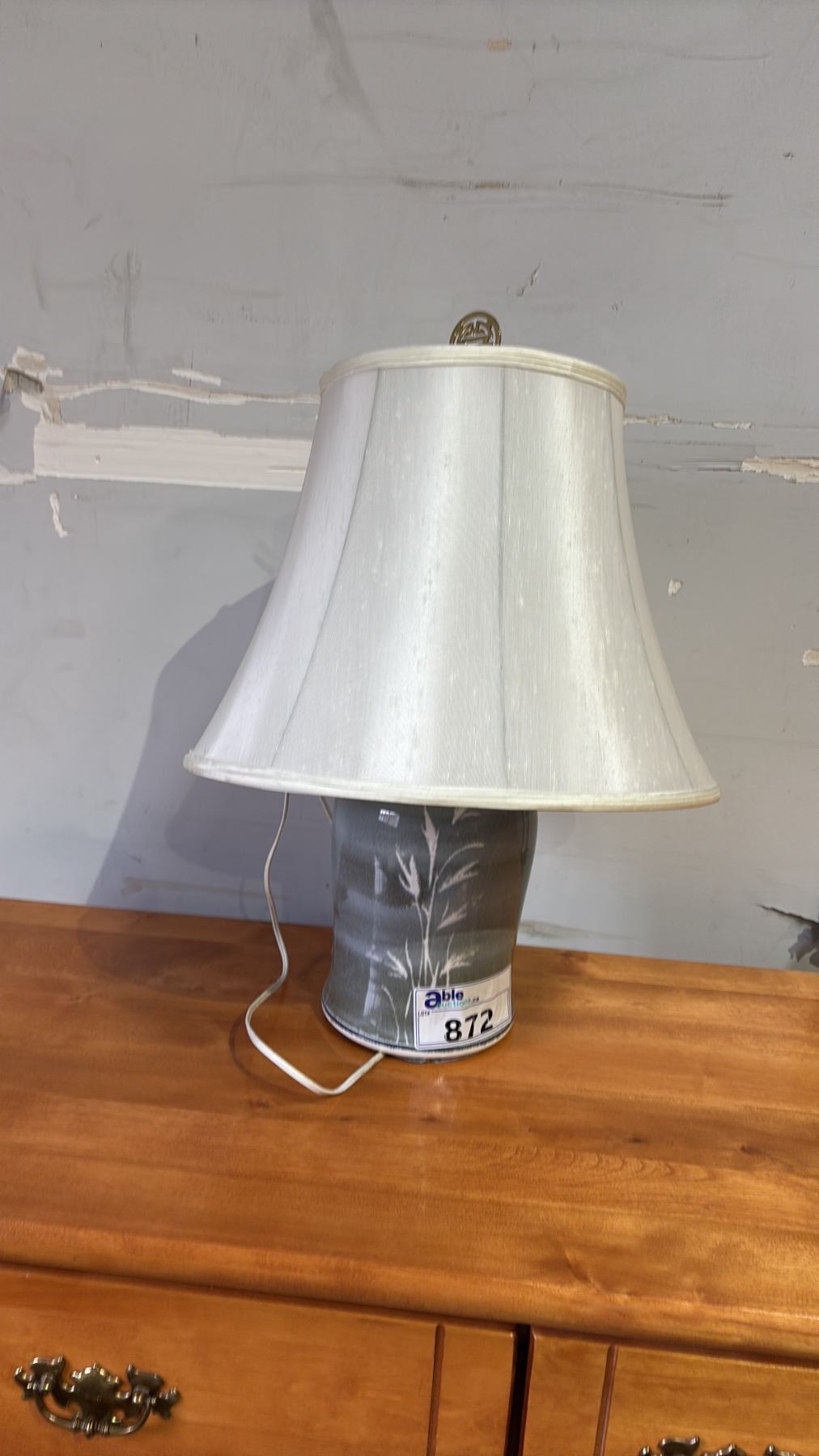MID-CENTURY POTTERY TABLE LAMP WITH SHADE