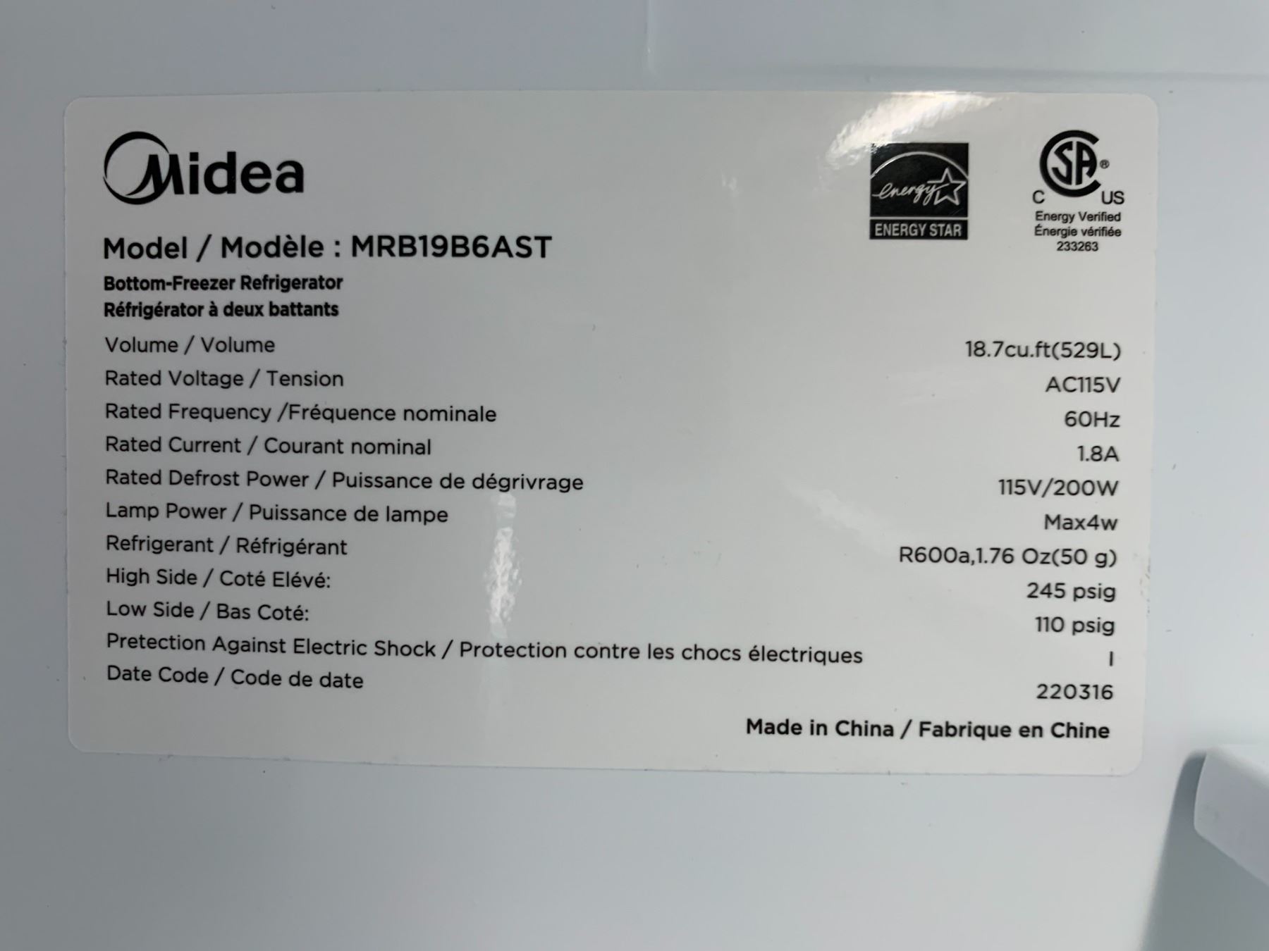 MIDEA STAINLESS STEEL FRONT REFRIGERATOR