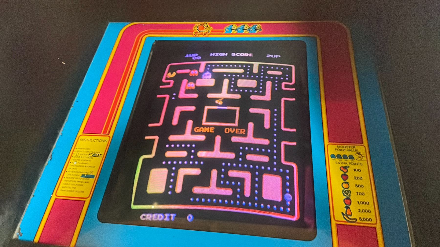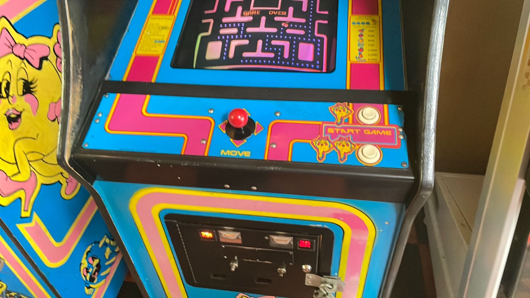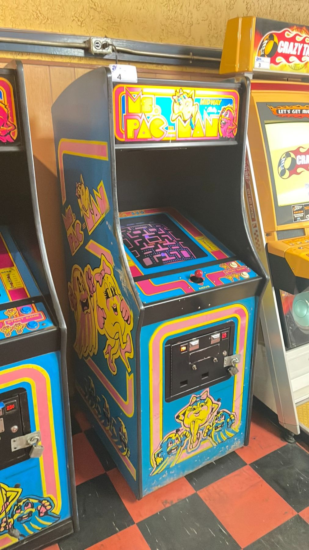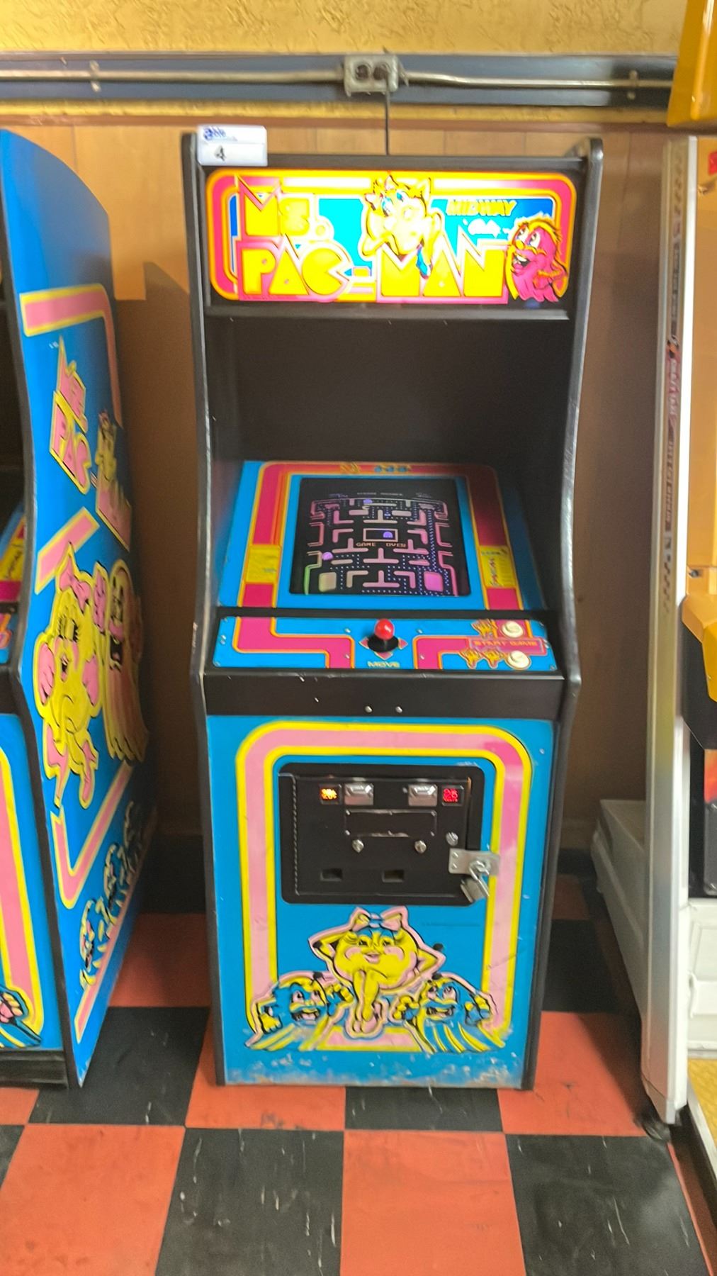MIDWAY BALLY CO. MS. PAC-MAN SINGLE PERSON COIN OPERATED UPRIGHT ARCADE GAME IN MIDWAY MS. PACK-MAN CABINET