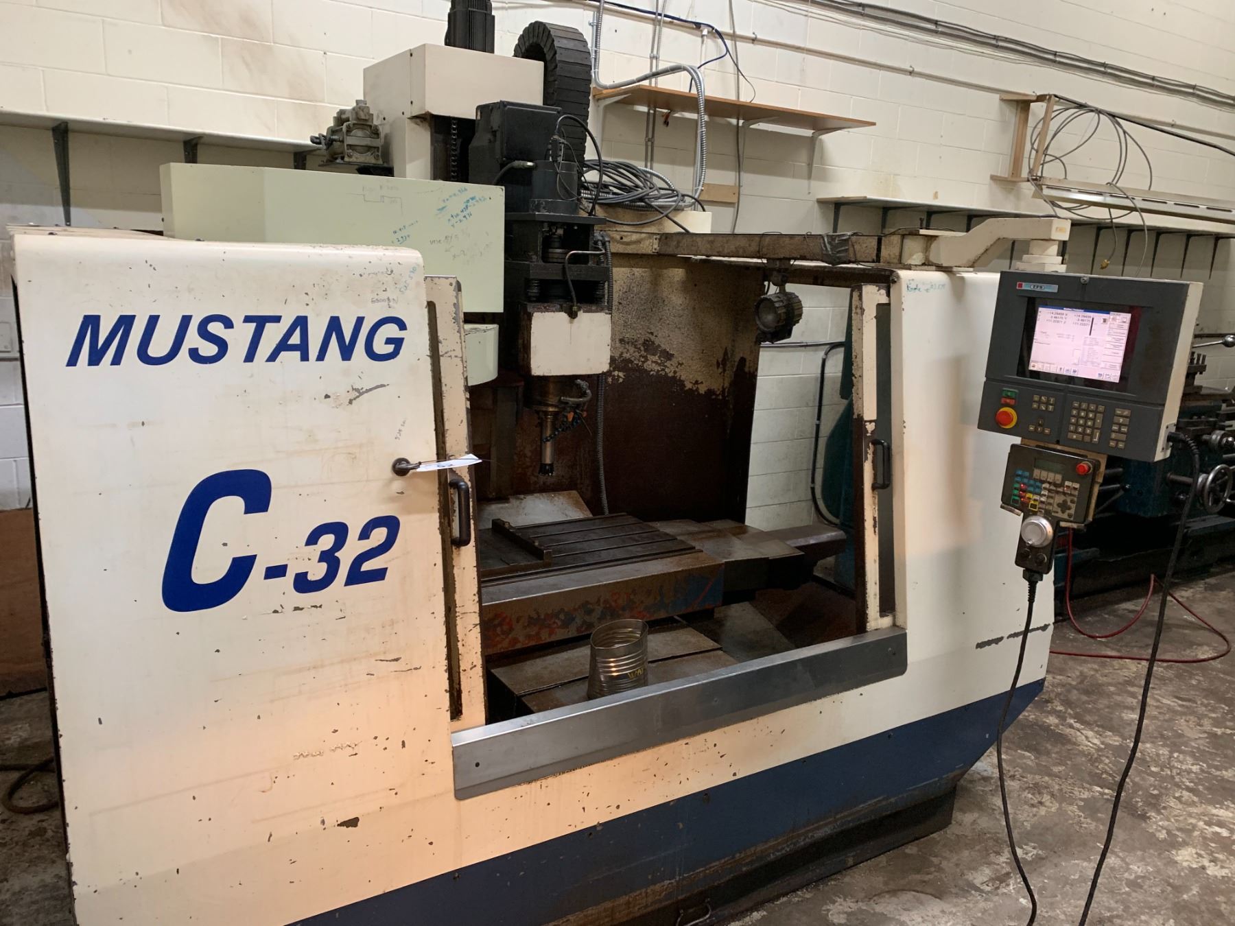 * MIGHTY MUSTANG MODEL C-32 VMC MILLING MACHINE-CAT40 HIGH TORQUE/ 32"X /20"Y/24"Z & ACHROMATIC 2100 **REMOVAL OF THIS PIECE REQUIRES HIAB/CRANE LIFT AND HEAVY MOVING SKATES**
