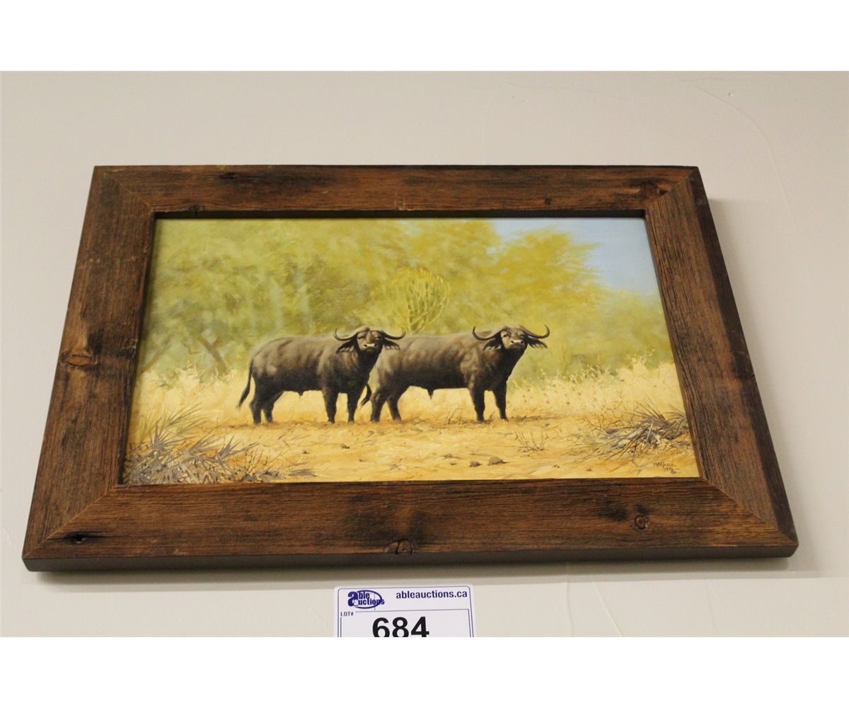 MIKE GHAUI- "CAPE BUFFALO" OIL ON CANVAS, SIGNED LOWER RIGHT 18" X 12"