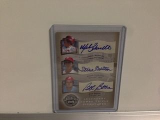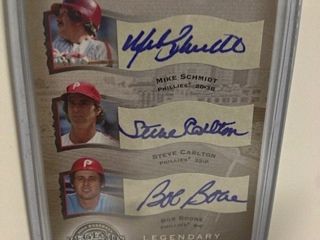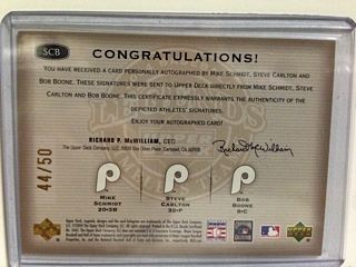 MIKE SCHMIDT, STEVE CARLTON & BOB BOONE TRIPLE SIGNED UPPER DECK 2004 LEGENDS