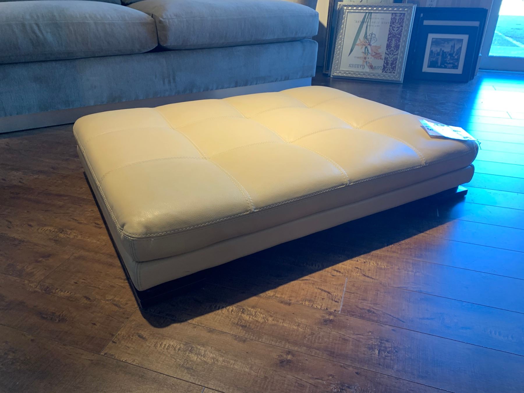 MILANO & DESIGN CREAM LEATHER UPHOLSTERED TABLE 113 X 113 X 78 CM MSRP $876