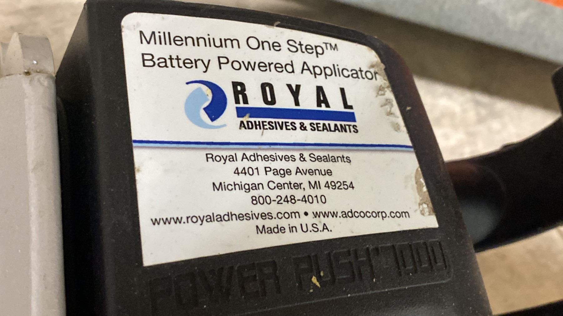 MILLENNIUM ONE STEP BATTERY POWERED APPLICATOR WITH BATTER & CHARGER WITH YELLOW CAULKING GUN
