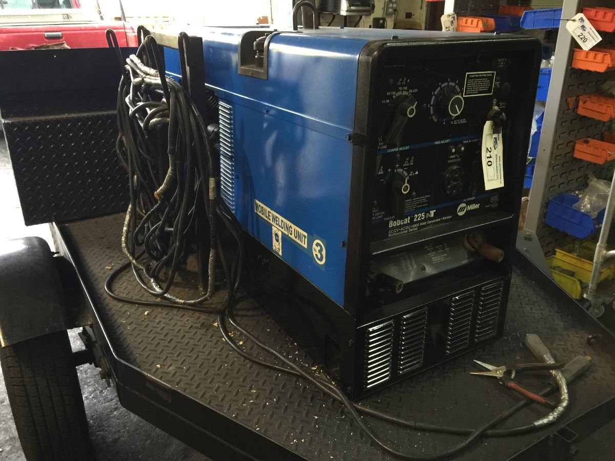 MILLER BOBCAT 225 NT RC/CV AC/DC 8000 WATT GENERATOR WELDER WITH GAS ENGINE, 1165 HOURS