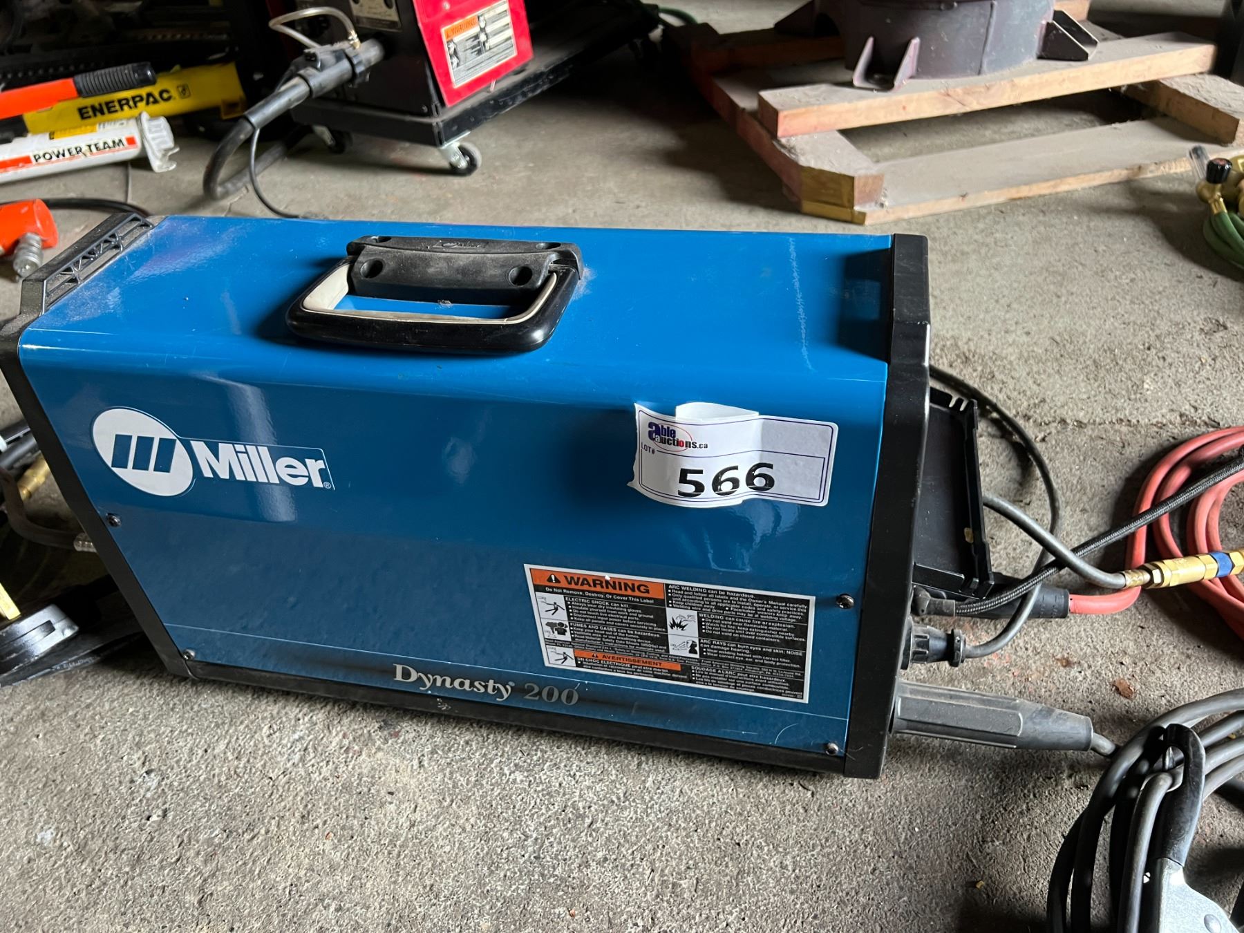 MILLER DYNASTY 200 TIG AND STICK WELDER WITH FOOT PEDAL REMOTE, ACDC. WITH WORLDWIDE TIG TORCH. EXCELLENT CONDITION
