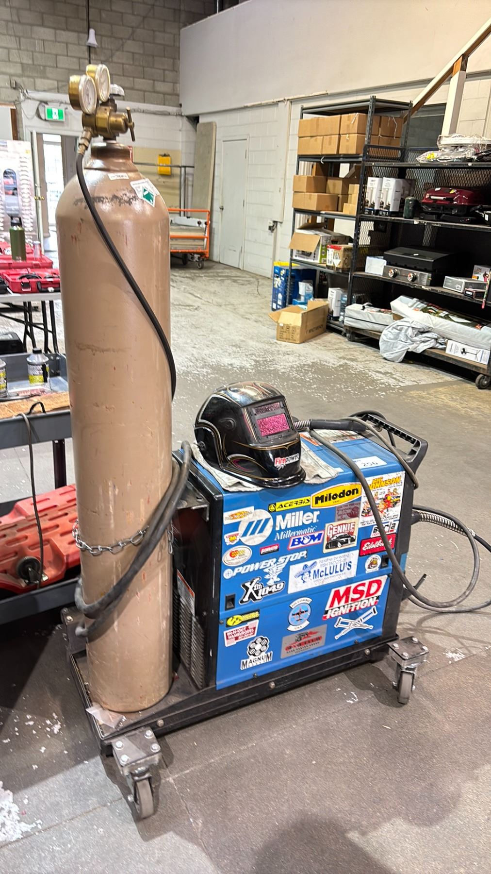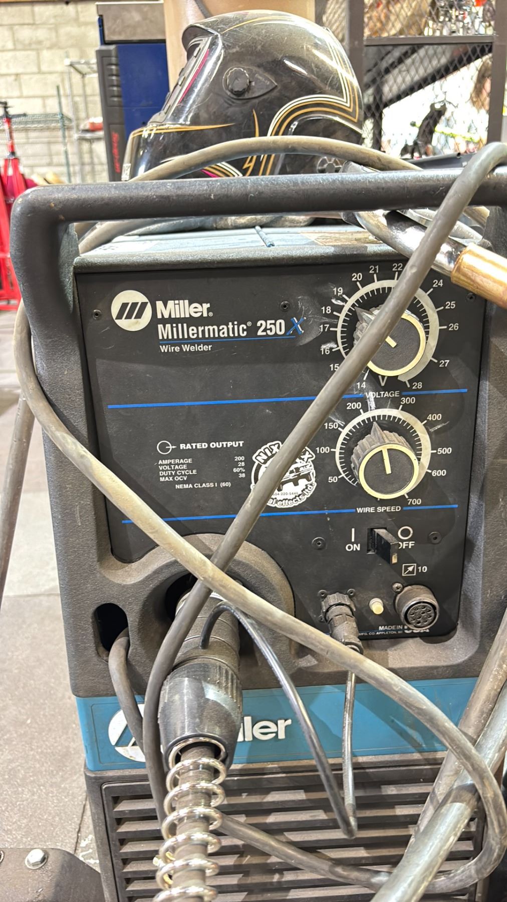 MILLER MILERMATIC 250 MIG WELDER WITH GLOVES, HELMET & TANK