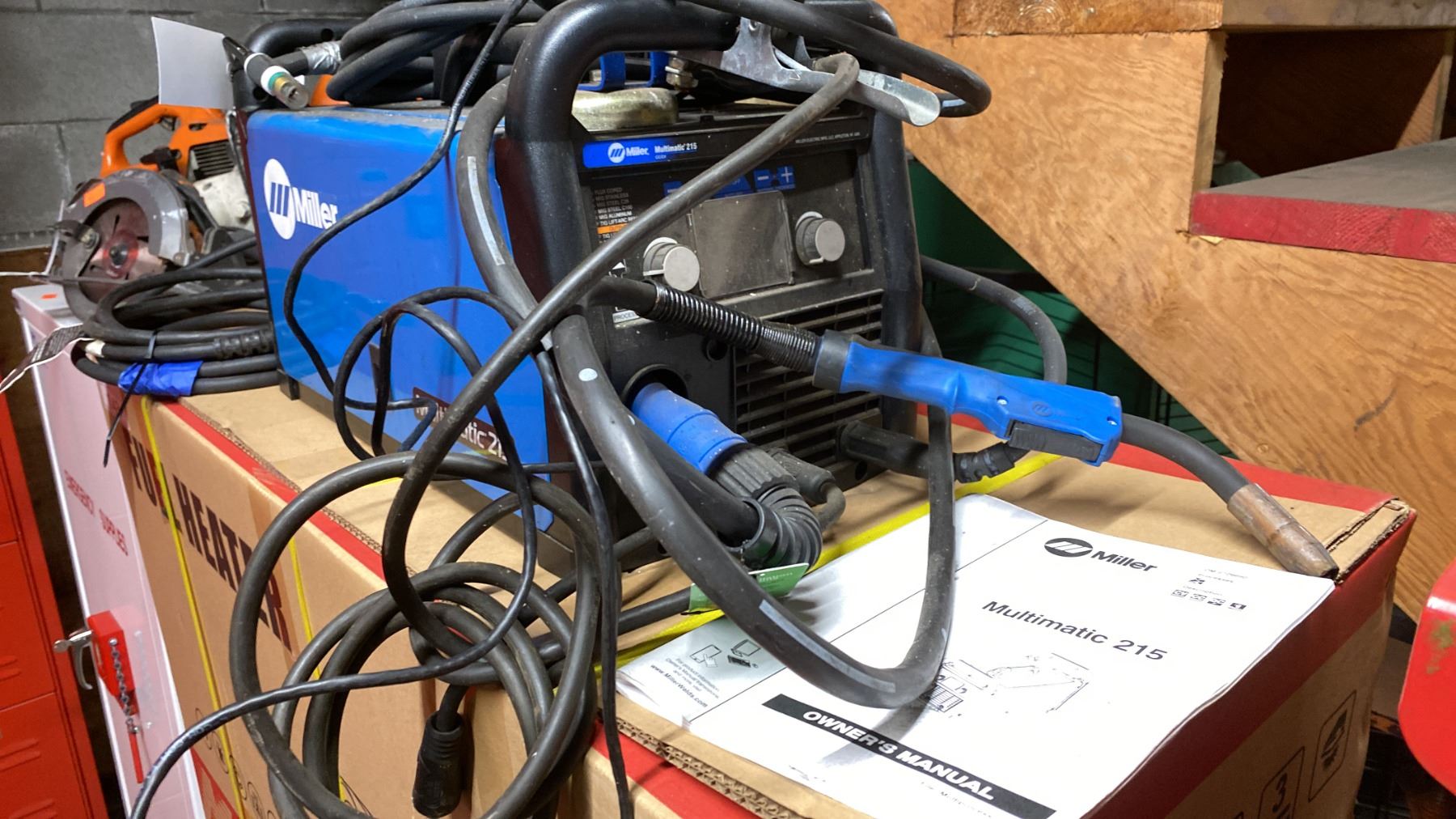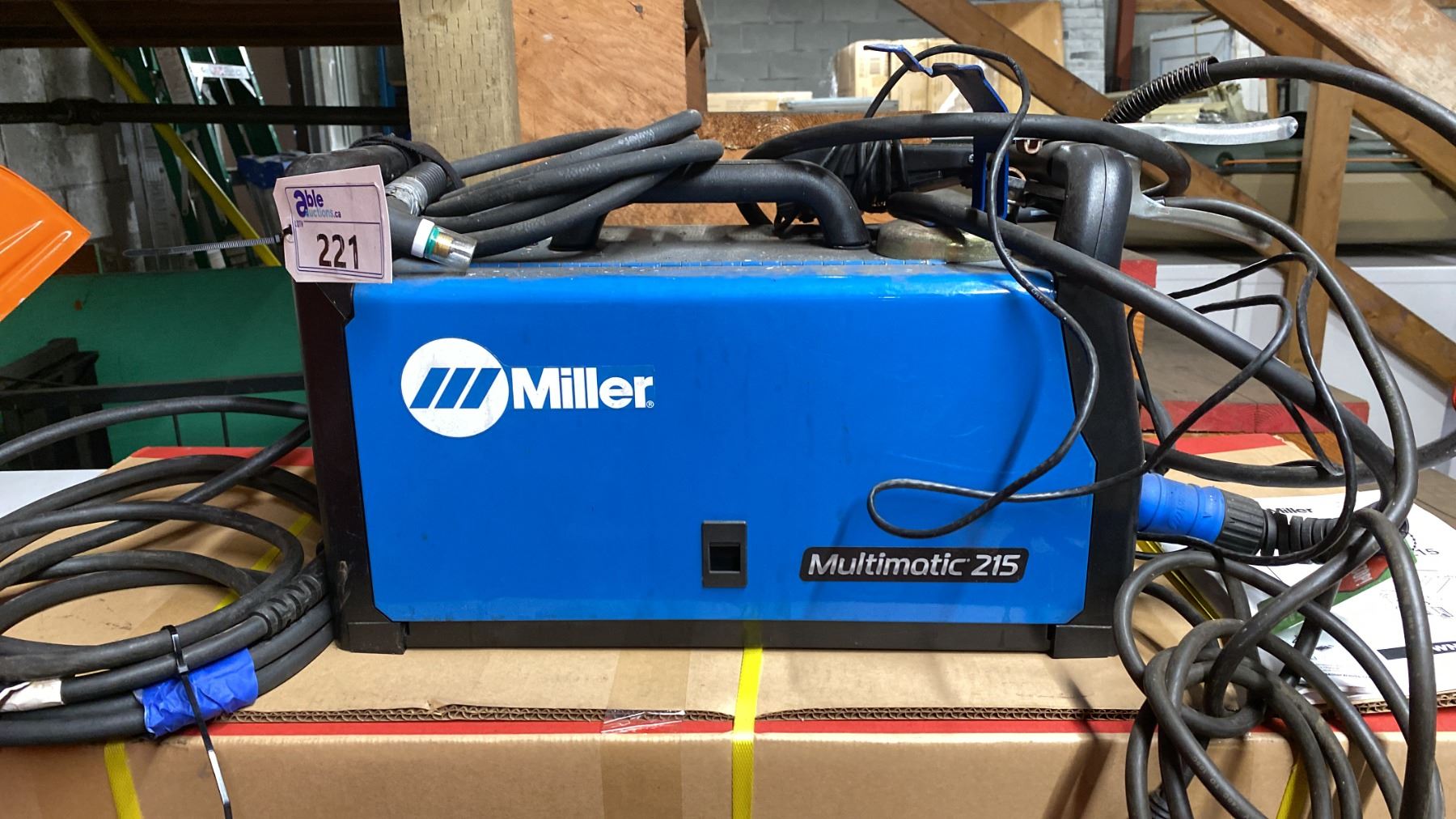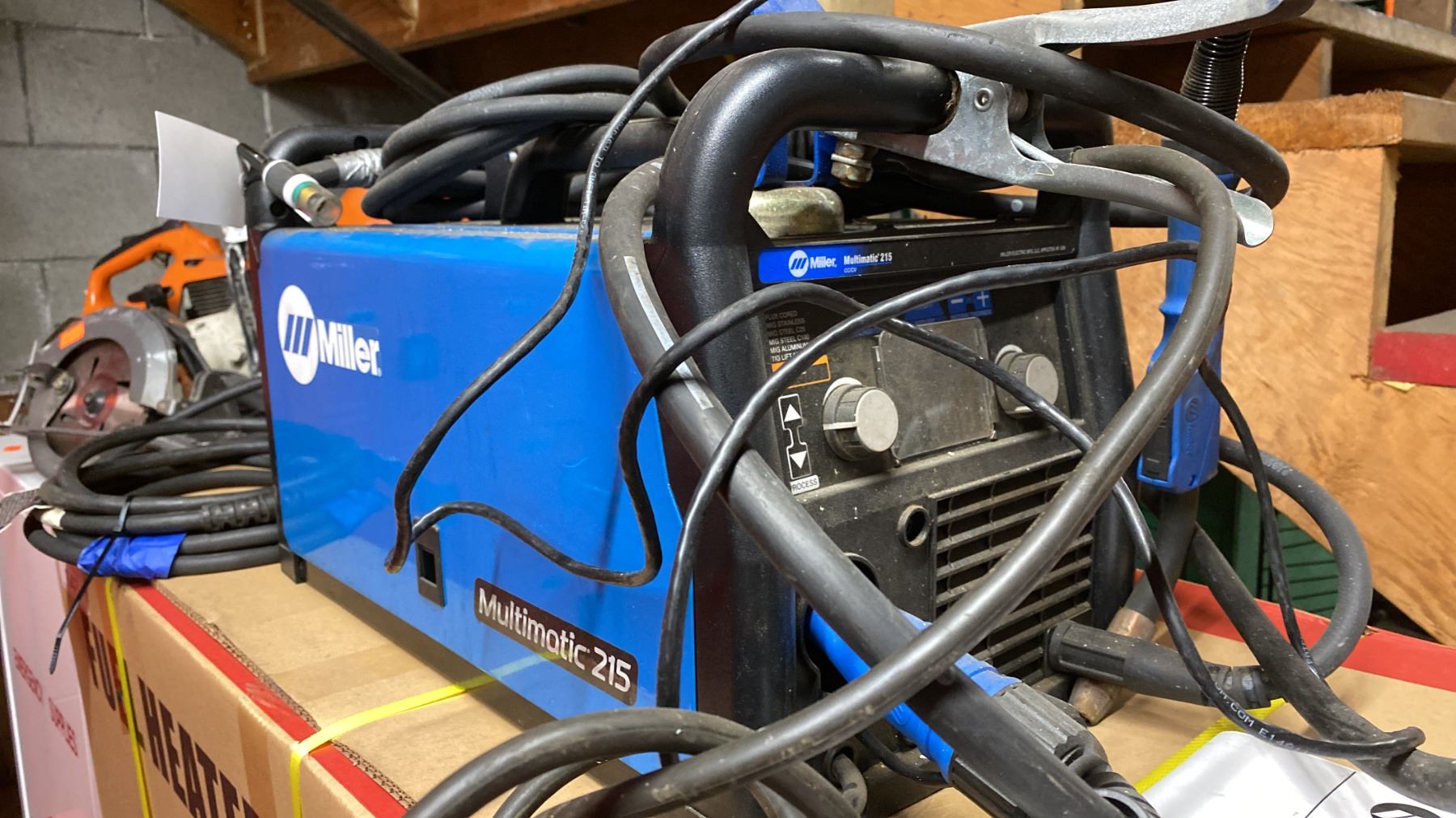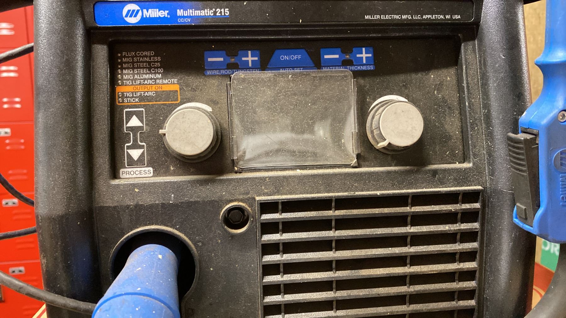 MILLER MULTIMATIC 215 PORTABLE MULTIPROCESS WELDER WITH GROUNDING CABLE, FOOT PEDAL & STINGERS