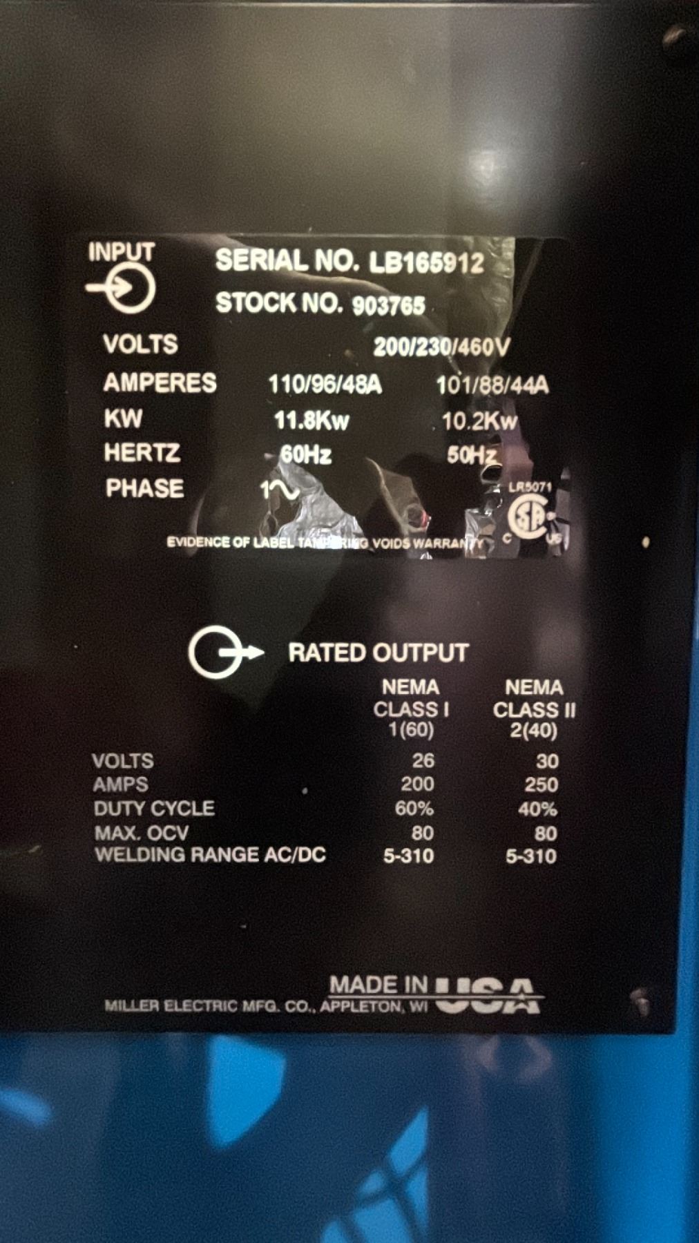 MILLER SYNCROWAVE 250 DX TIG WELDER 28" X 28" X 48"H