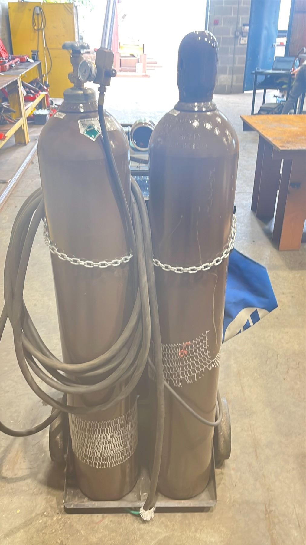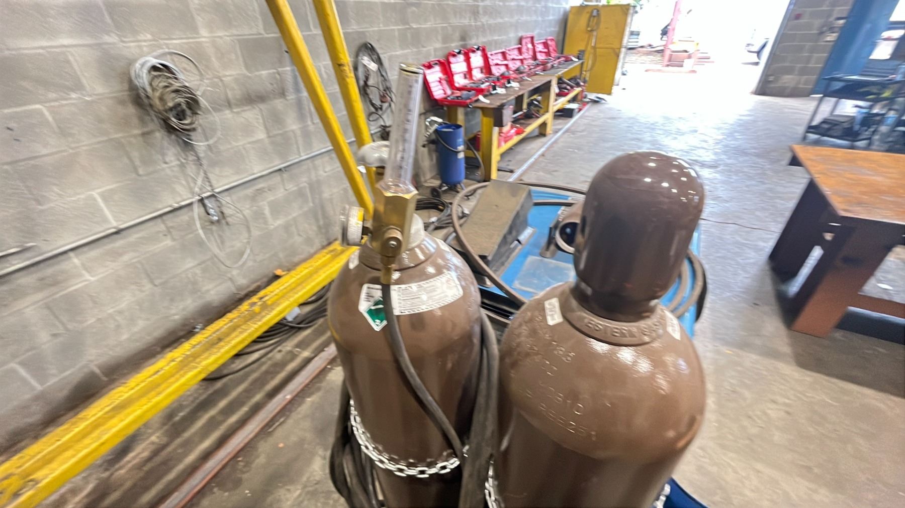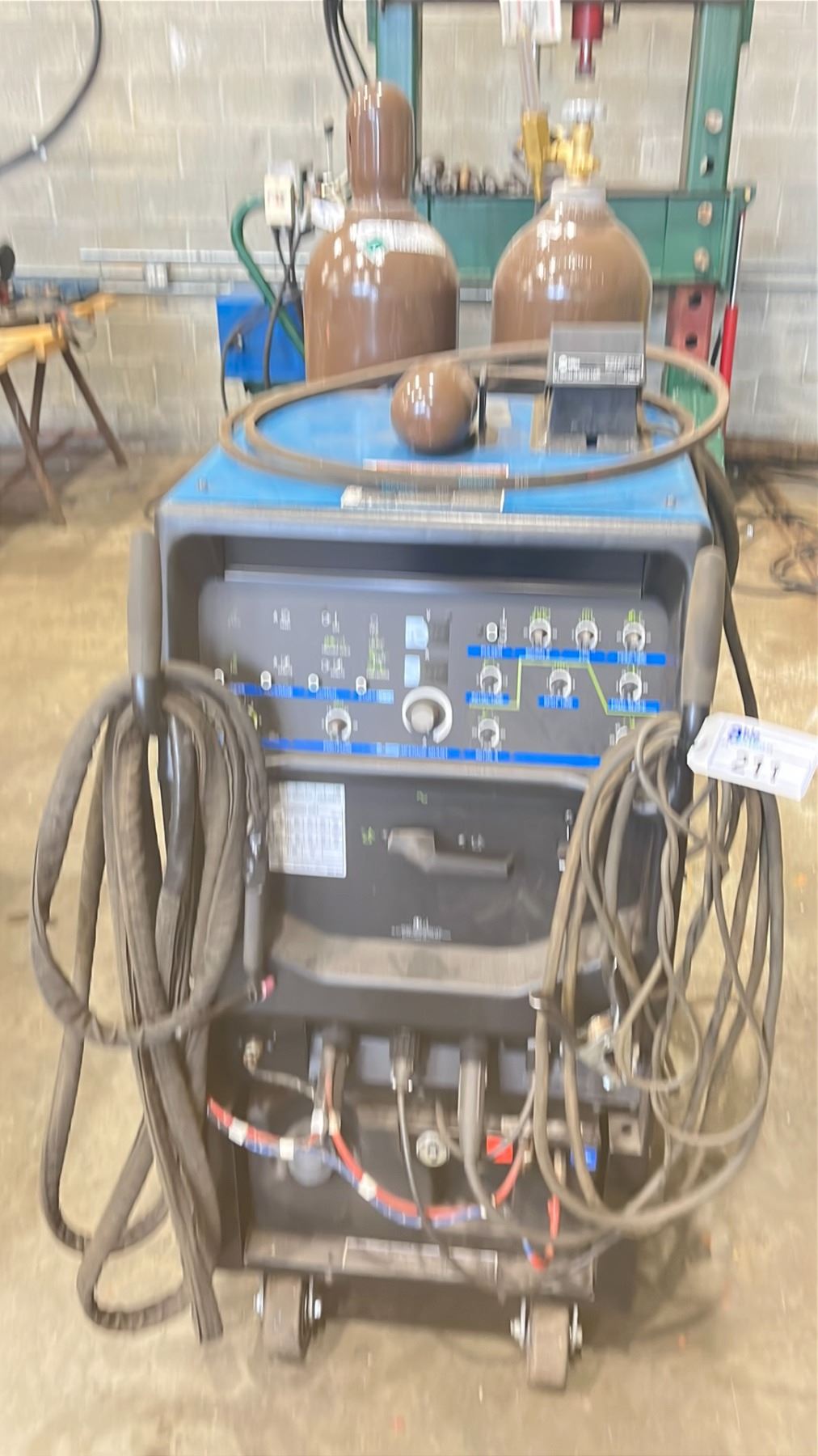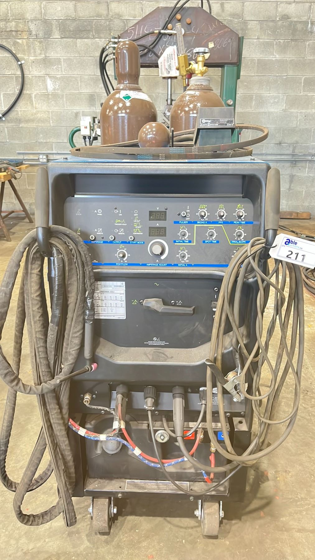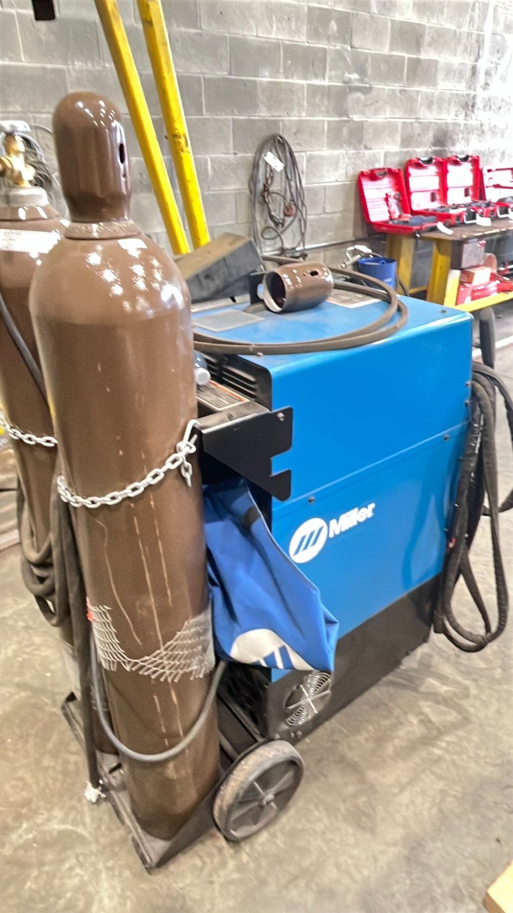 MILLER SYNCROWAVE 350 LX TIG WELDER ON MOBILE CART WITH 2 ARGON GAS CYLINDERS