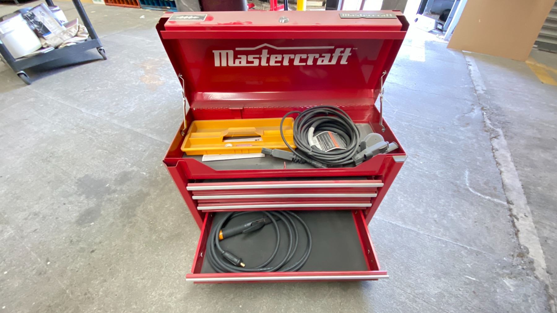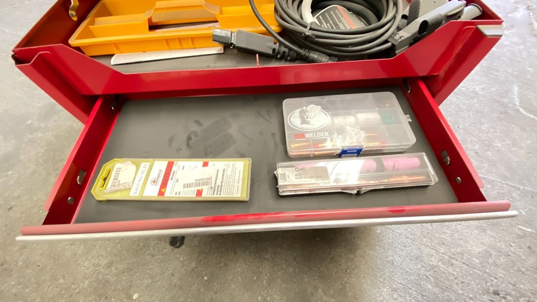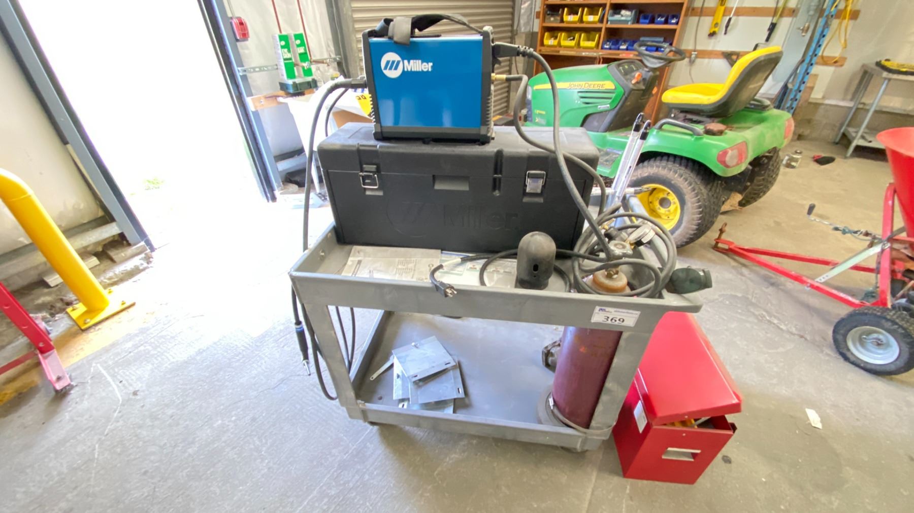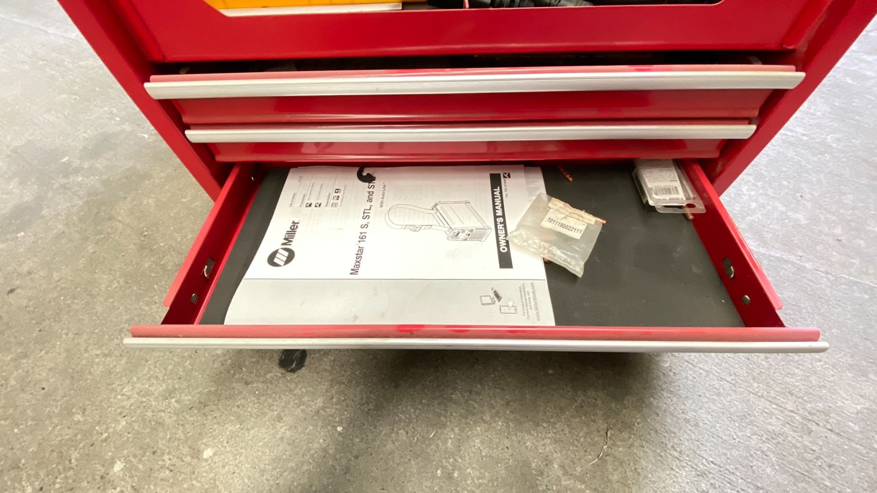 MILLER TIG WELDER MODEL MAXSTAR 161STL WITH TANK ON CART. INC ASST WELDING ROD AND TOOL BOX WITH ACCESSORIES. 110V