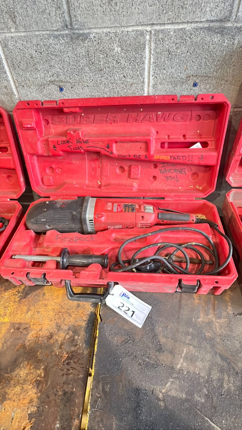 MILWAUKEE 1 1/2" SUPER HAWG ELECTRIC GRINDER IN HARD TRANSPORT CASE