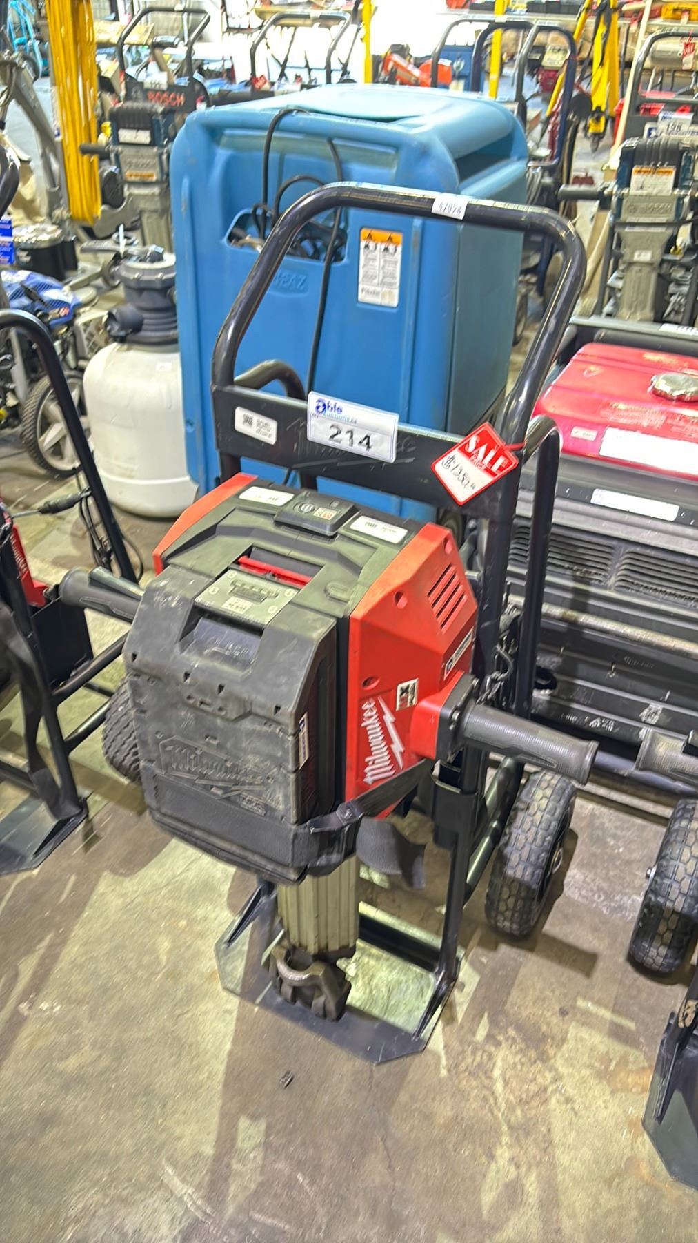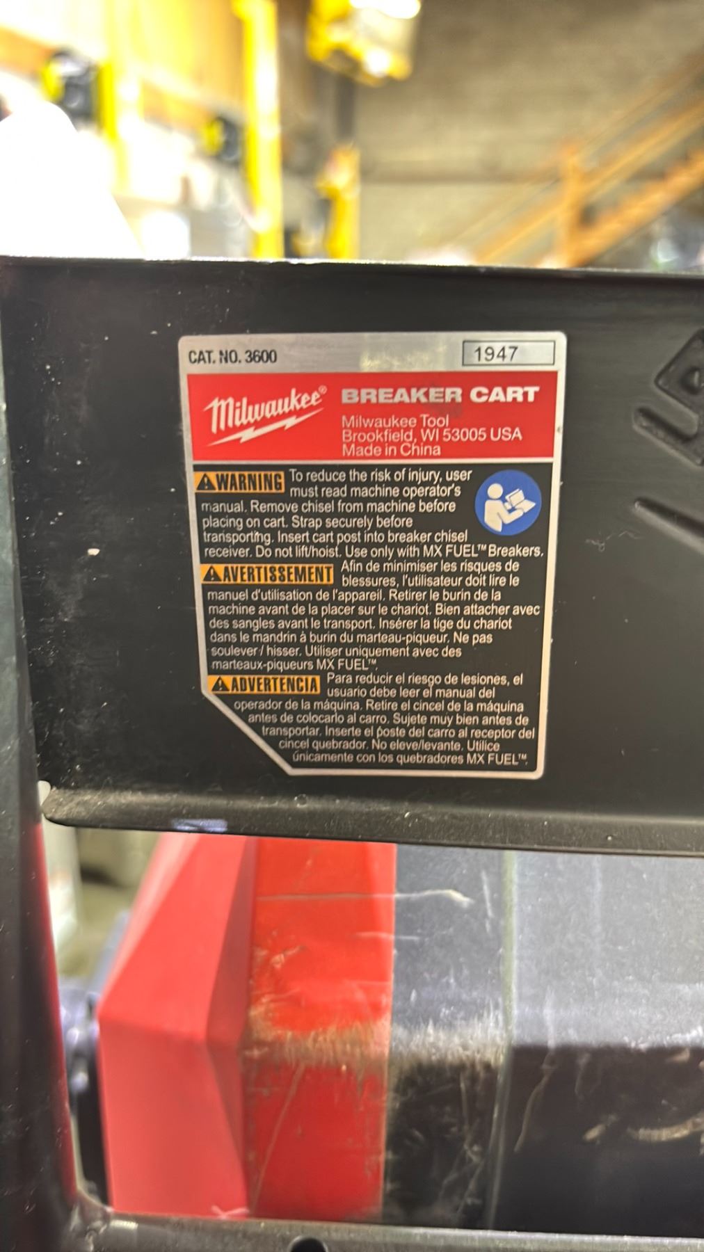 MILWAUKEE 1-1/8" BREAKER HAMMER WITH BATTERY & CHARGER ON A MILWAUKEE BREAKER CART