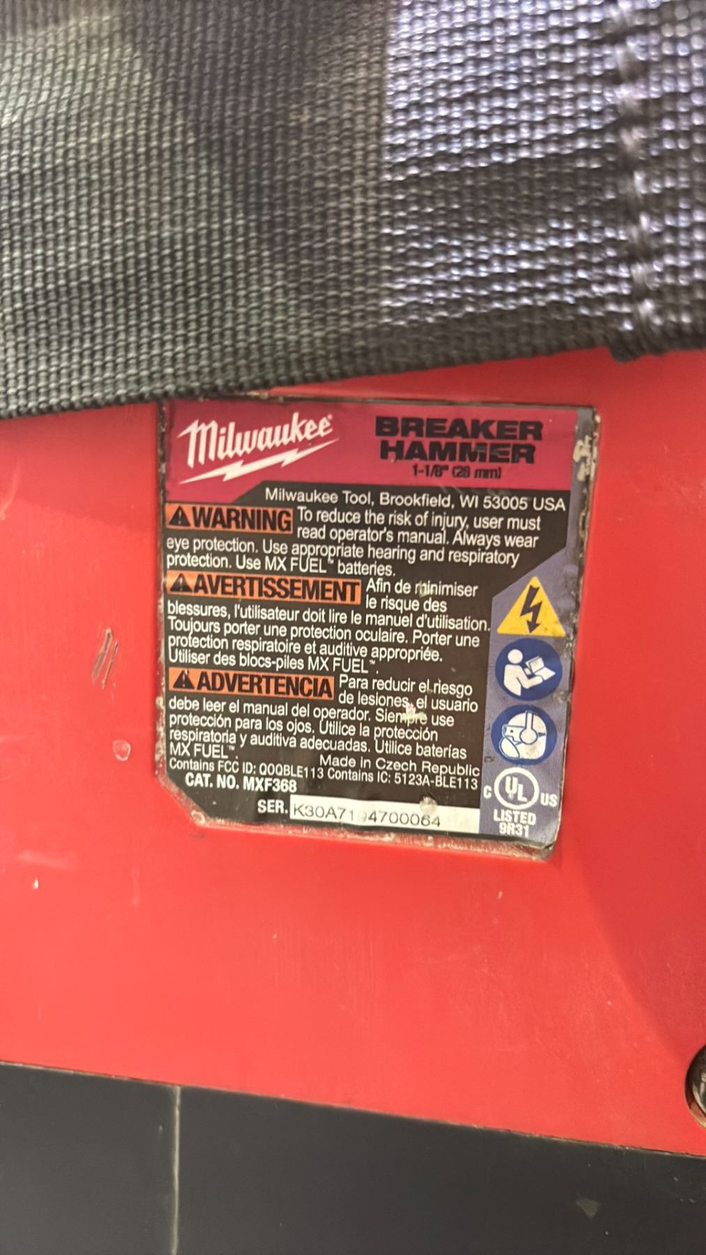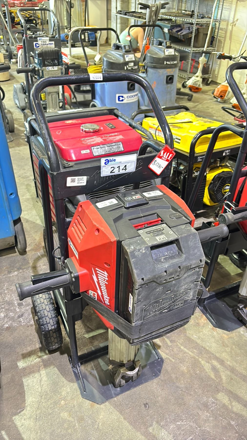 MILWAUKEE 1-1/8  BREAKER HAMMER WITH BATTERY & CHARGER ON A MILWAUKEE BREAKER CART