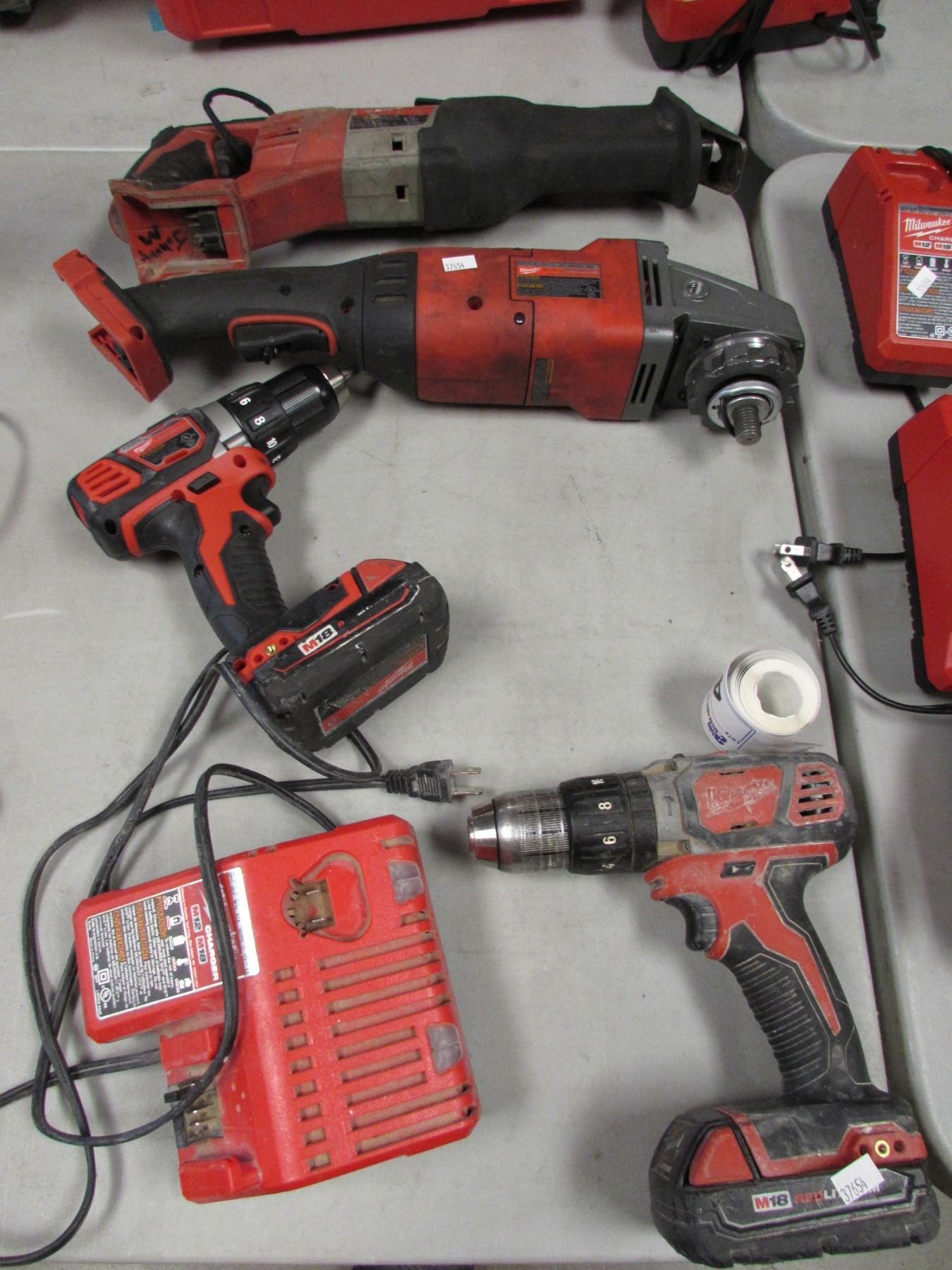 MILWAUKEE 1/2" HAMMER DRILL, MILWAUKEE 1/2" DRILL/DRIVER, MILWAUKEE 7"/9" GRINDER, MILWAUKEE SAWZALL, MILWAUKEE M12/M18 CHARGER & BATTERIES