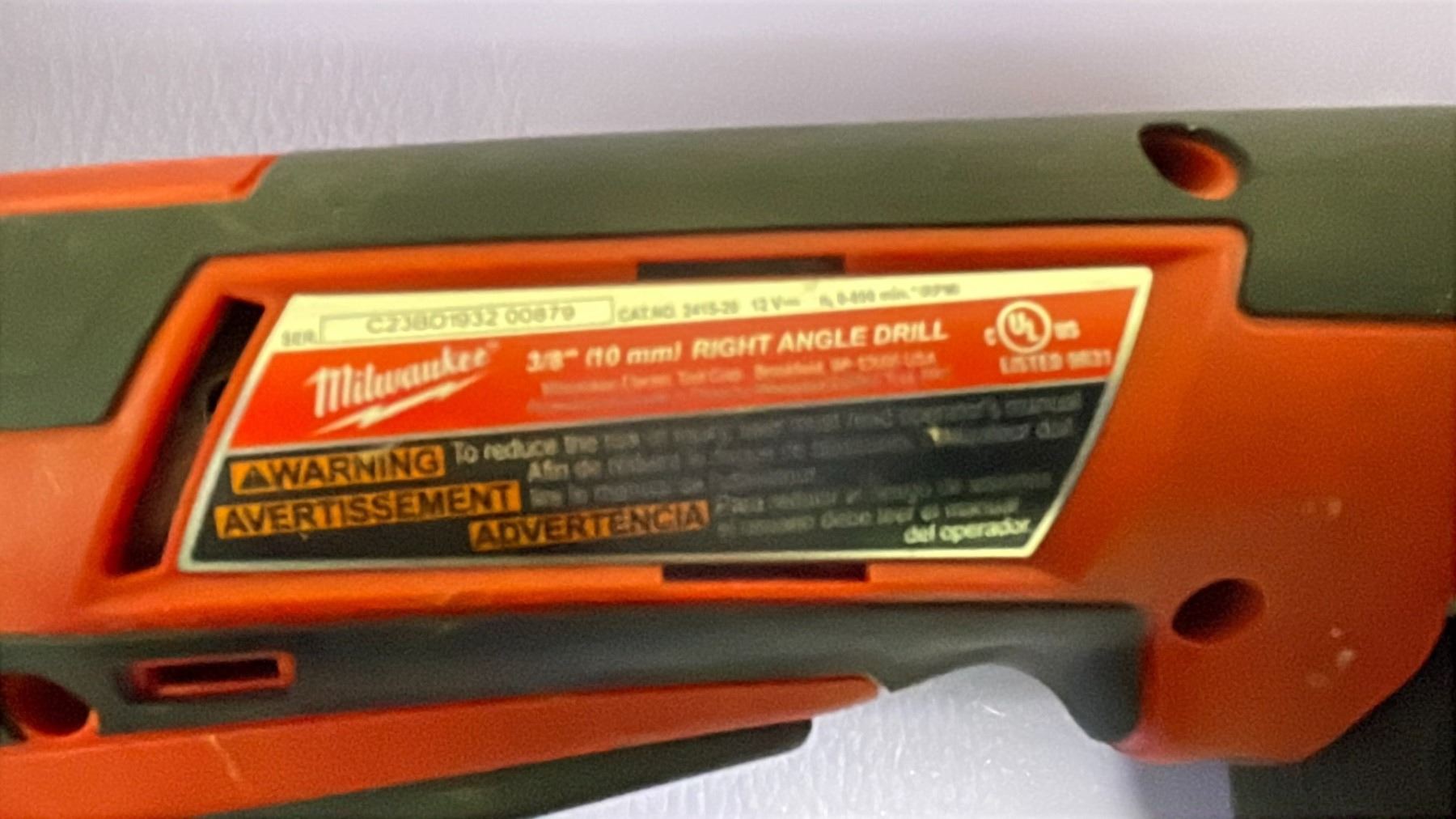 MILWAUKEE 3/8" (10MM) RIGHT ANGLE BATTERY OPERATED DRILL WITH BATTERY