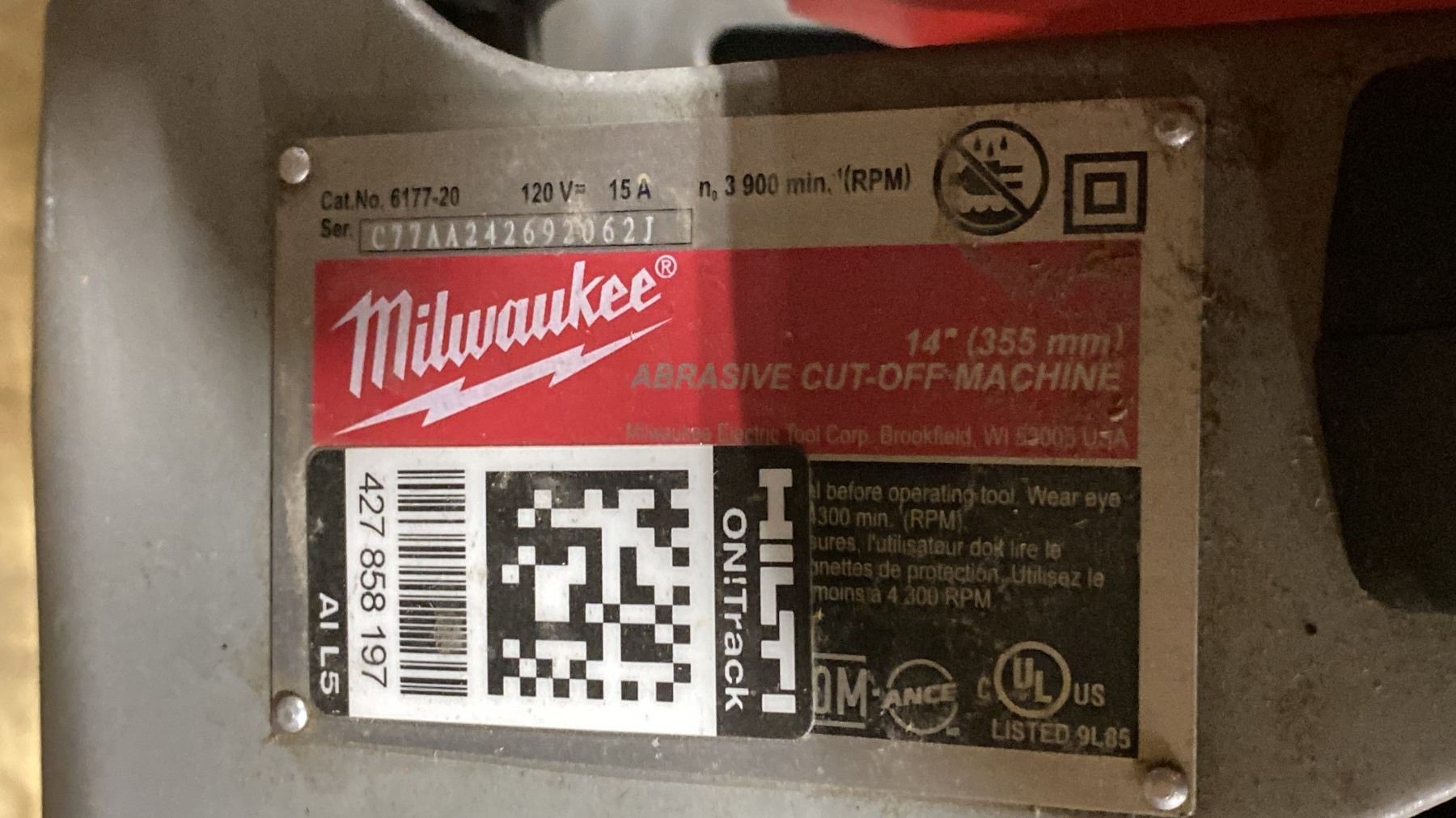 MILWAUKEE 6177-20, 14" INDUSTRIAL ELECTRIC ABRASIVE CUT OFF SAW