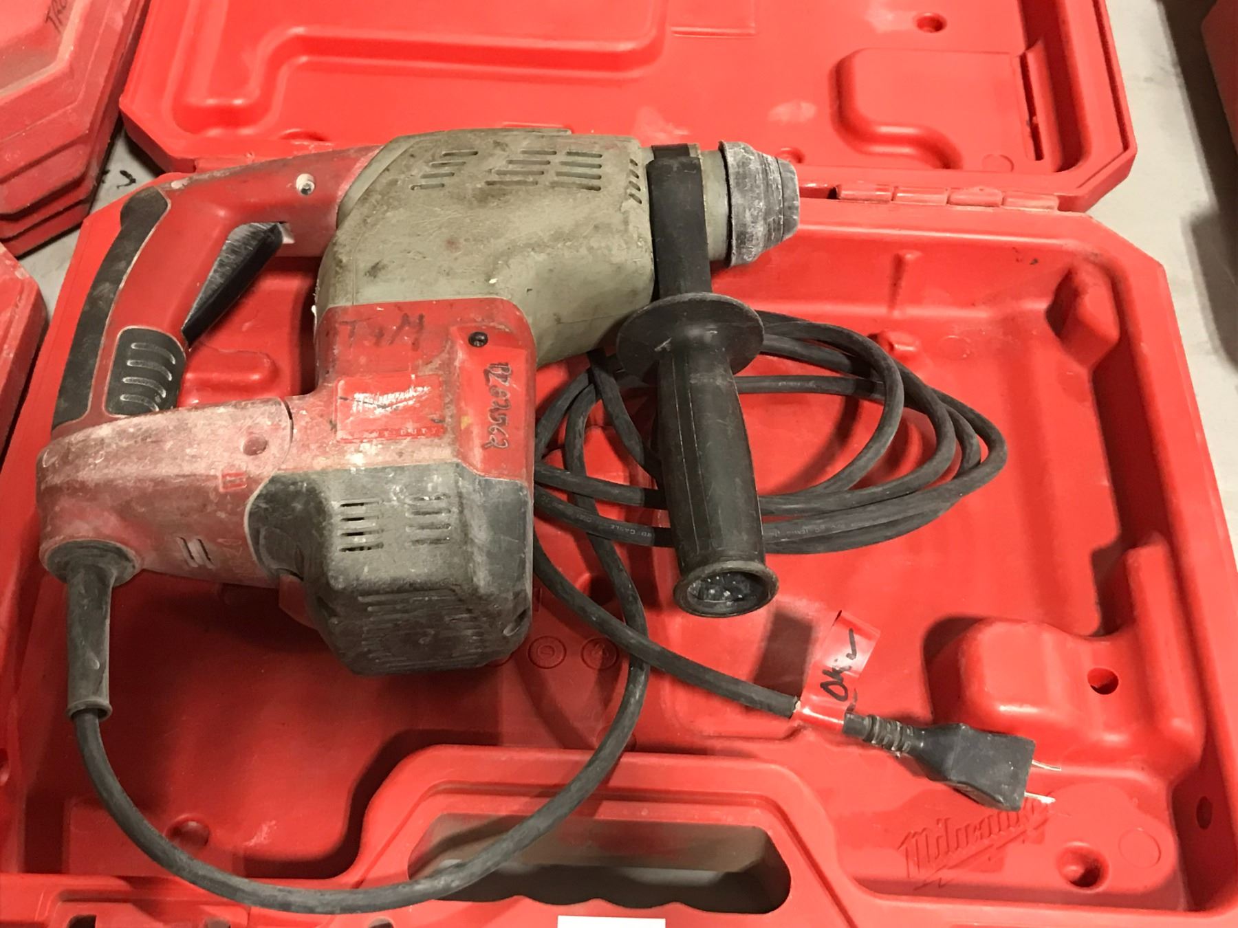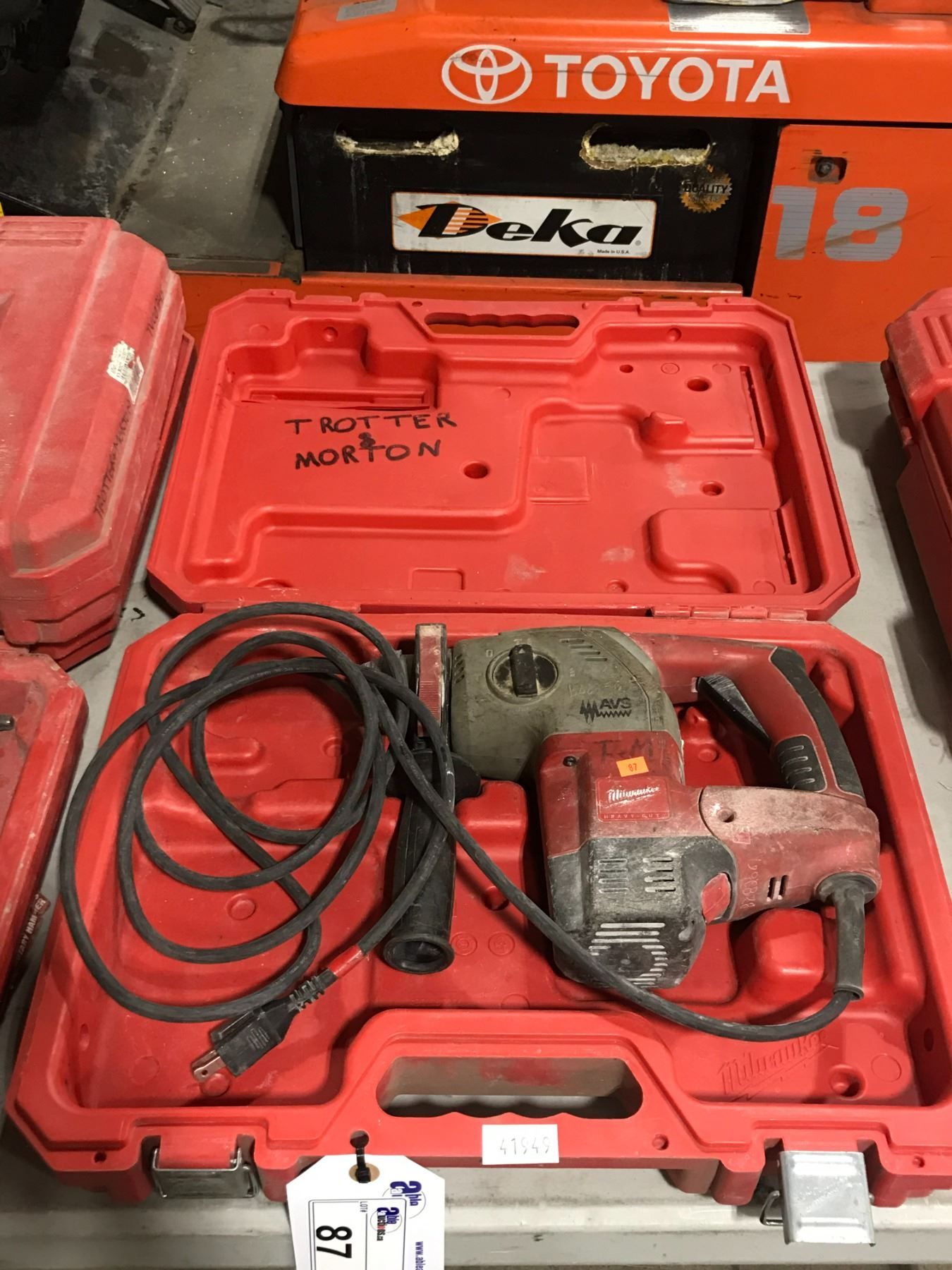 MILWAUKEE AVS HEAVY DUTY ELECTRIC 1  ROTARY HAMMER DRILL WITH HANDLE IN HARD CASE
