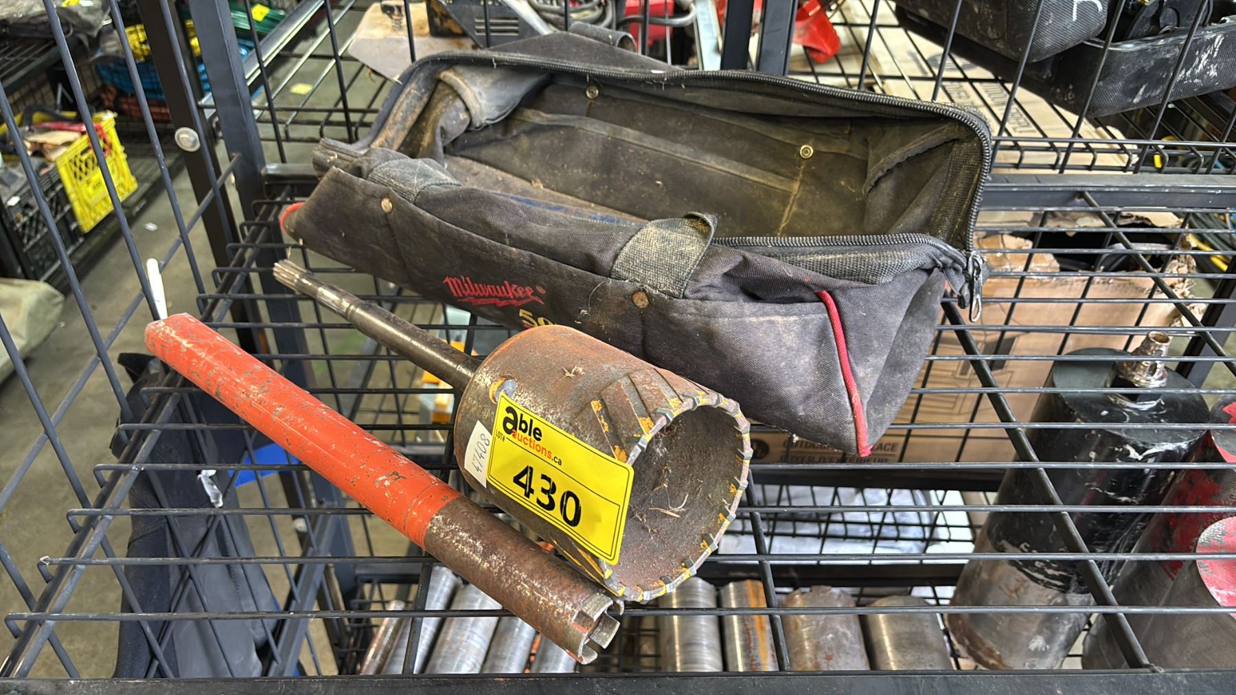 MILWAUKEE CONCRETE CORE DRILL BIT & MILWAUKEE TOOL BAG WITH ASSORTED FILES