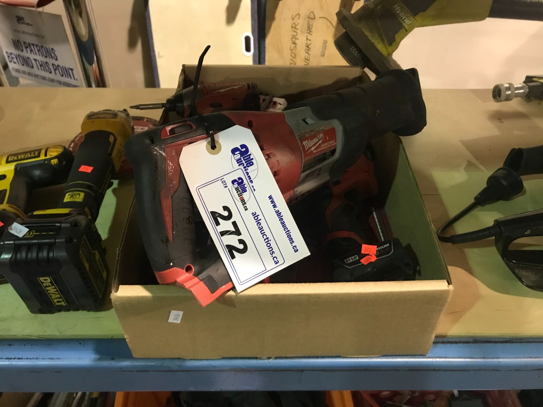 MILWAUKEE CORDLESS SAWZALL & HACKZALL, DRILL AND ASSORTED BATTERIES