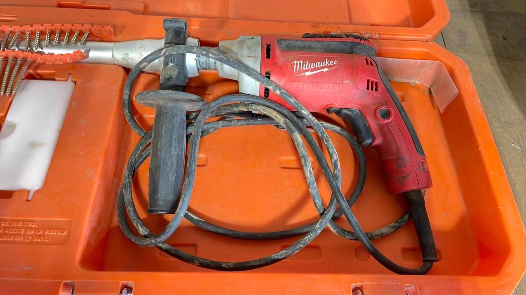 MILWAUKEE ELECTRIC INDUSTRIAL DRILL W/ PAM DRIVE IN HARD TRANSPORT CASE