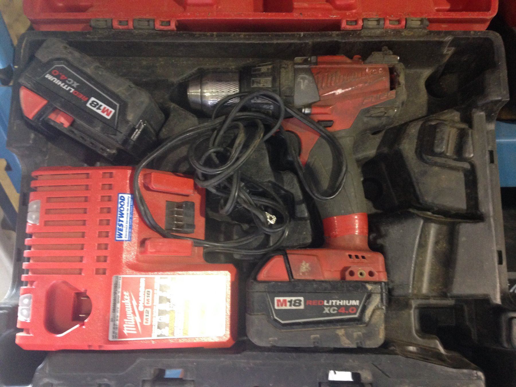MILWAUKEE M18 CORDLESS DRILL WITH 2 BATTERIES & CHARGER IN CASE