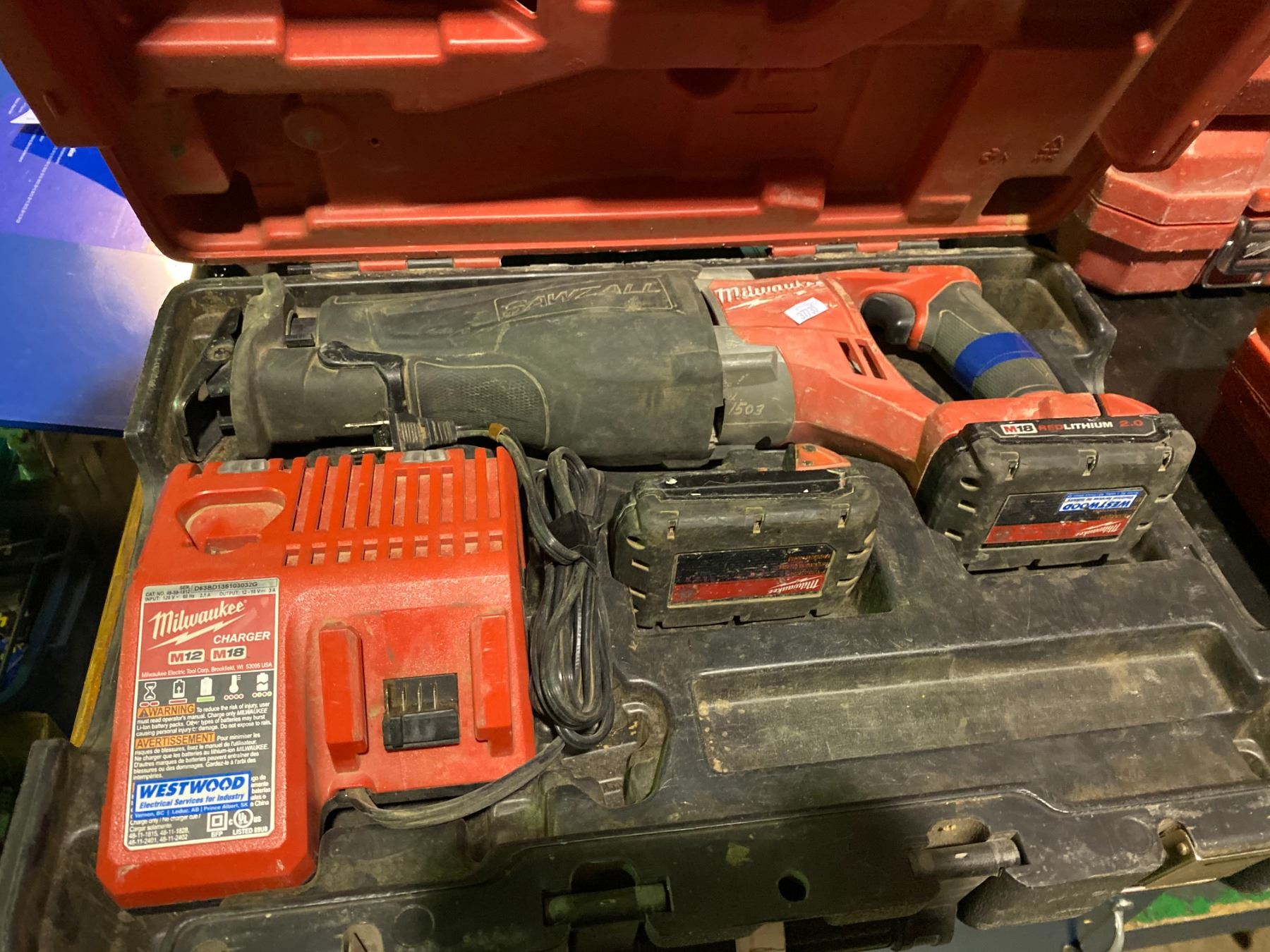 MILWAUKEE M18 CORDLESS RECIPROCATING SAW WITH CHARGER AND TWO BATTERIES IN CASE