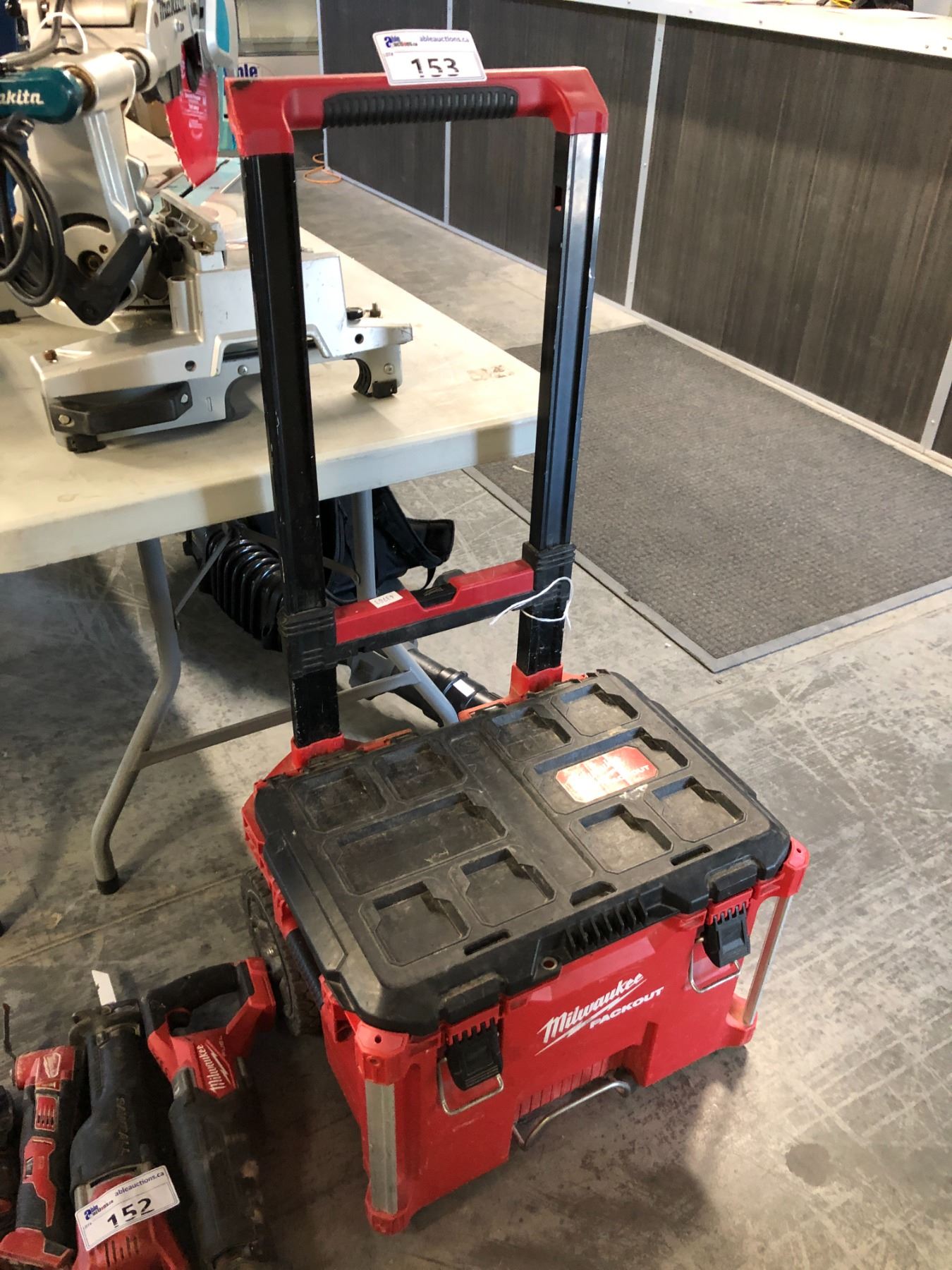 MILWAUKEE PACKOUT MOBILE STACKABLE TOOL BOX BASE AND CONTENTS