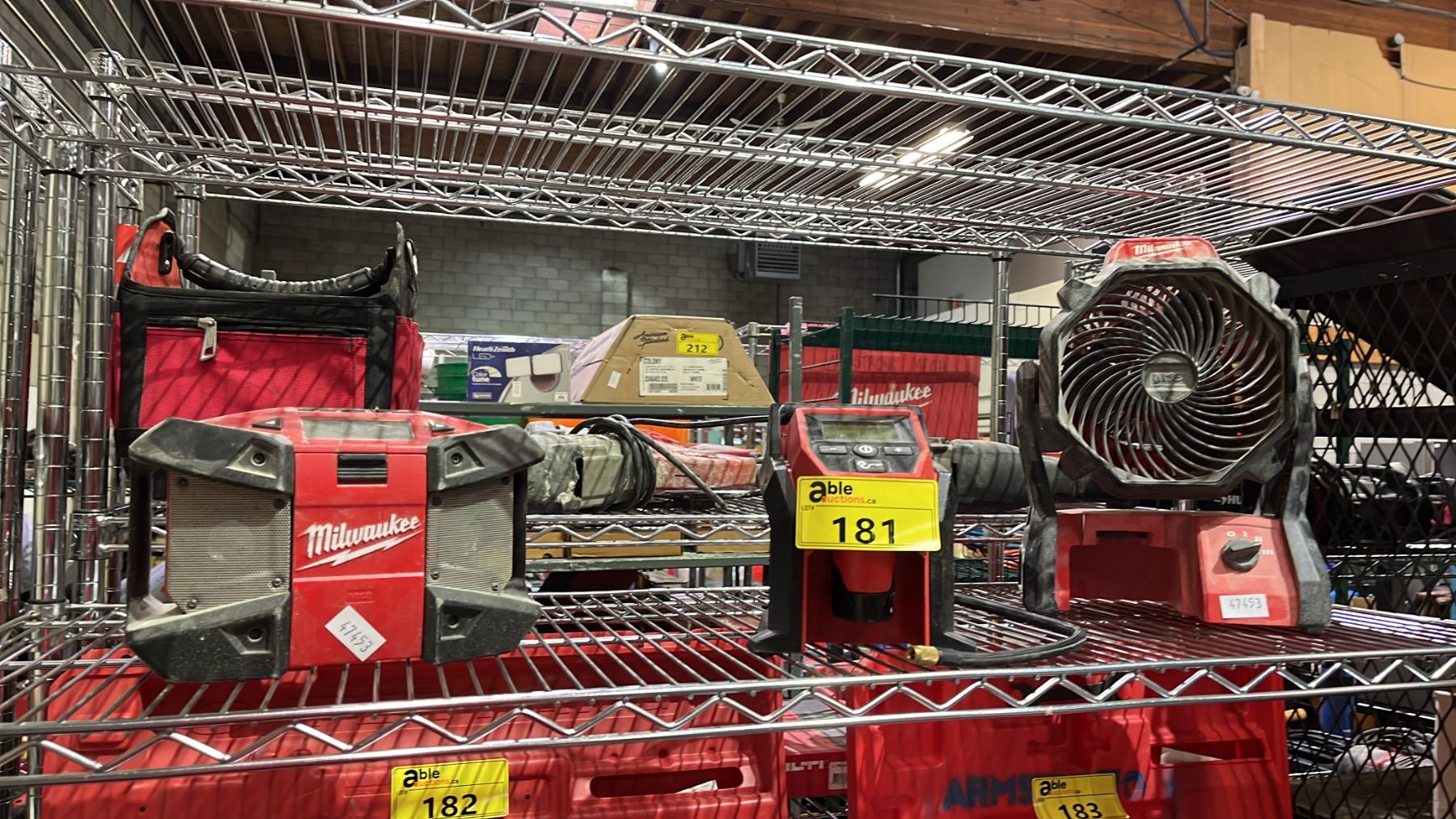 MILWAUKEE RADIO *NO BATTERY*, MILWAUKEE COMPACT INFLATOR WITH BATTERY & MILWAUKEE PORTABLE FAN *NO BATTERY*