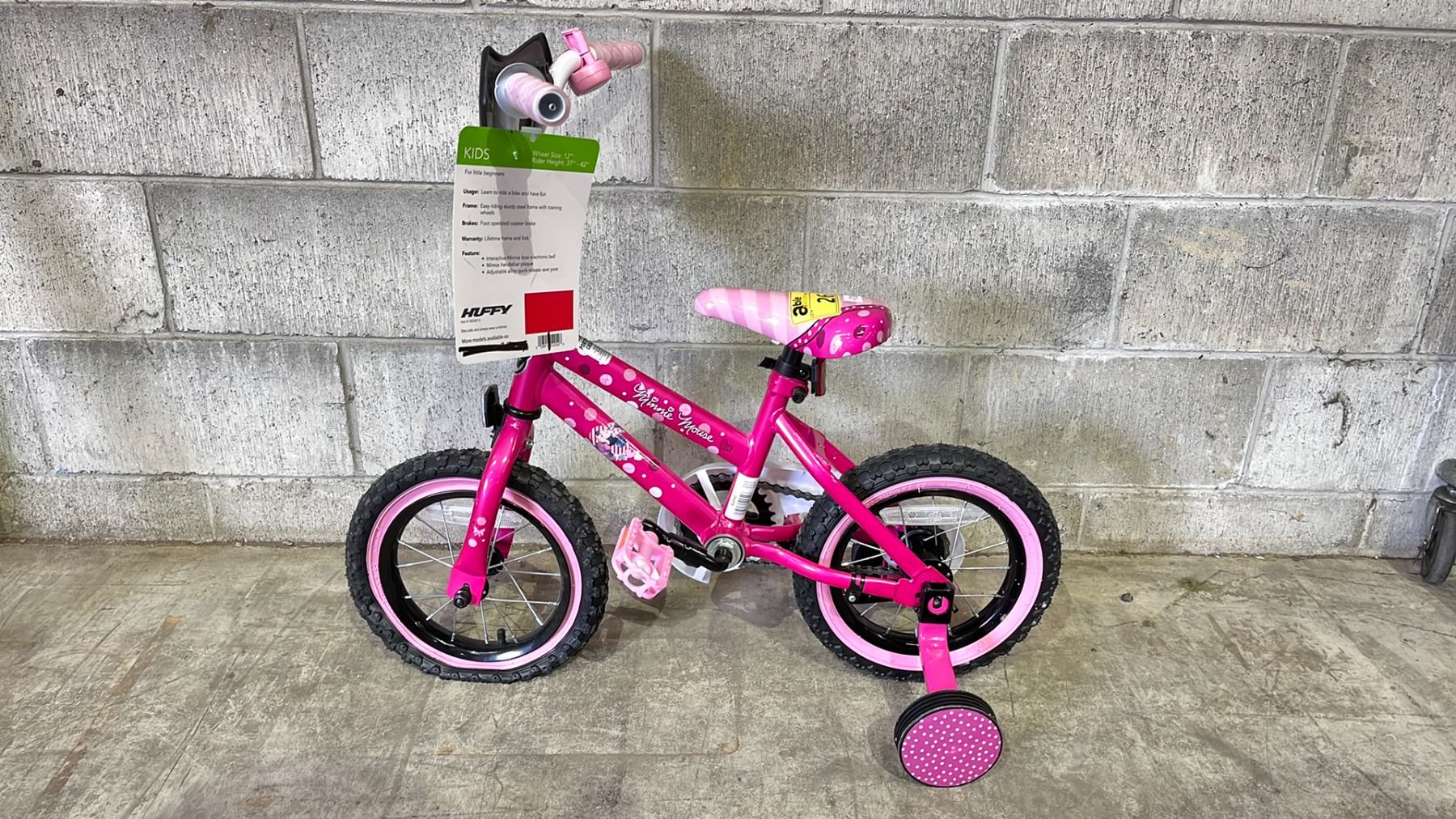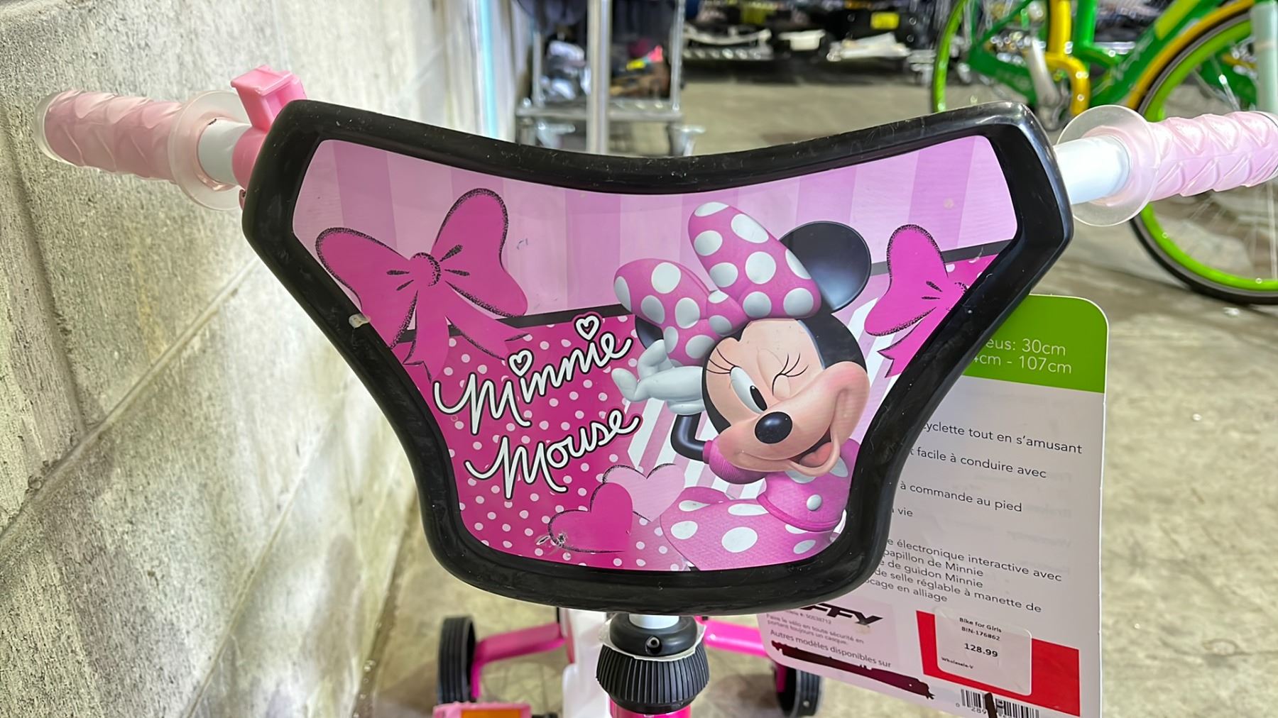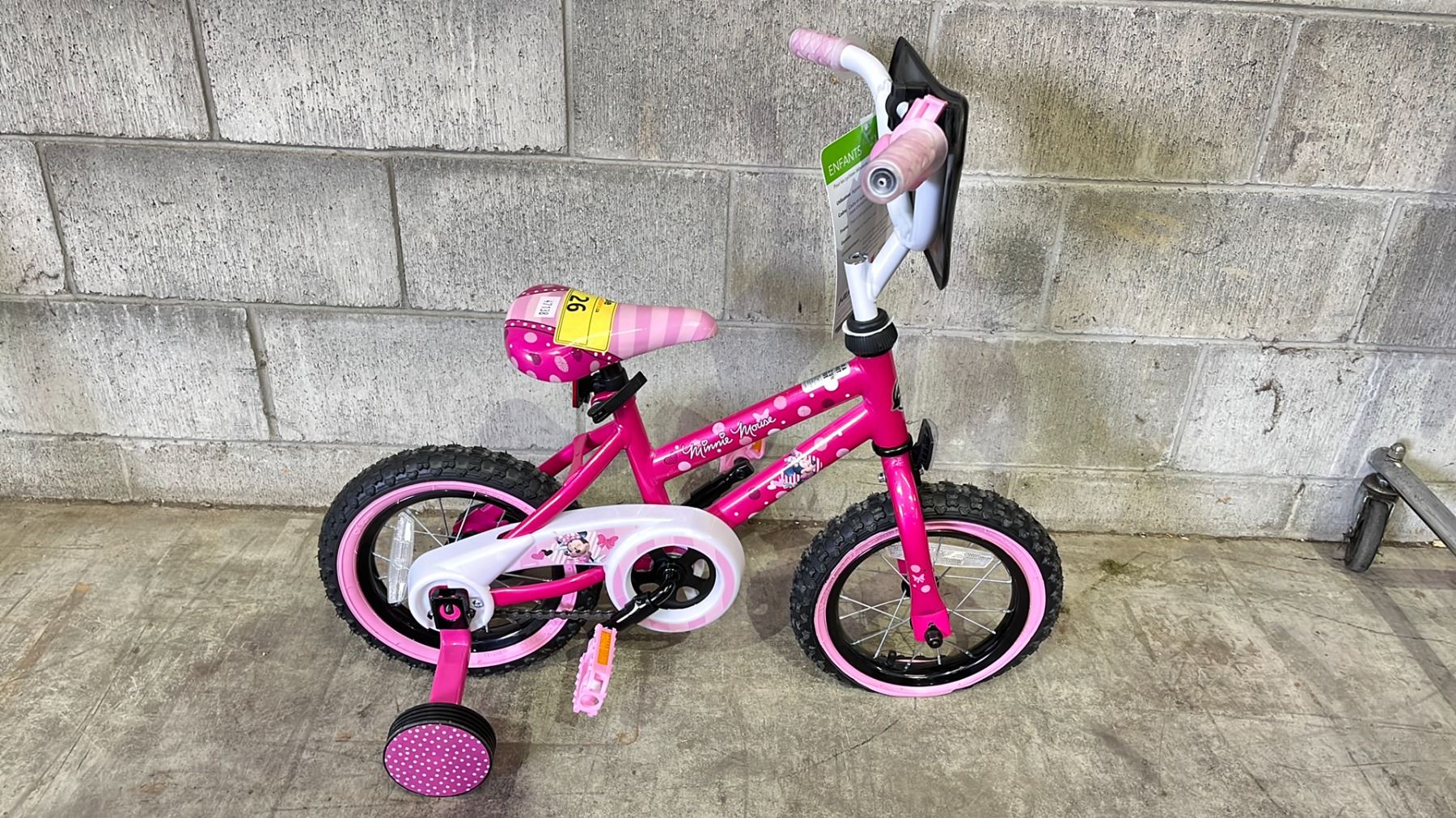 MINNIE MOUSE PINK SINGLE SPEED CHILDRENS BIKE WITH TRAINING WHEELS *FRONT TIRE FLAT*