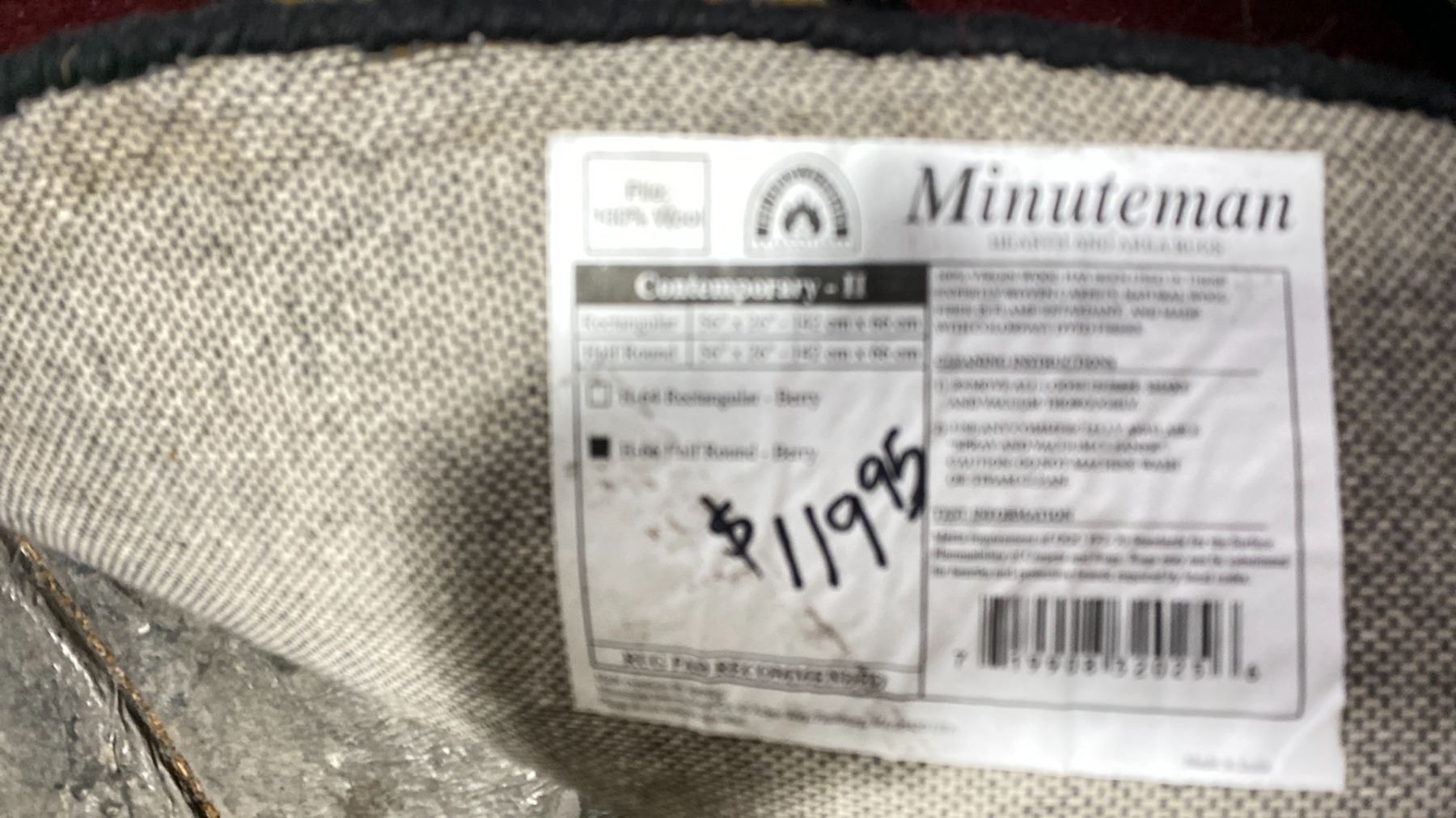 MINUTEMAN 100% WOOL HEARTH RUG. 56X26". MODEL H-66 BERRY