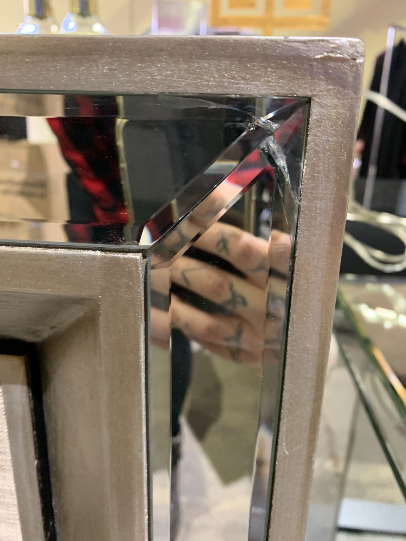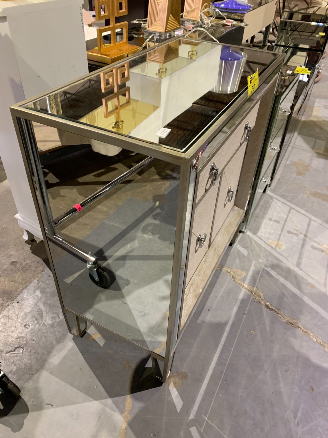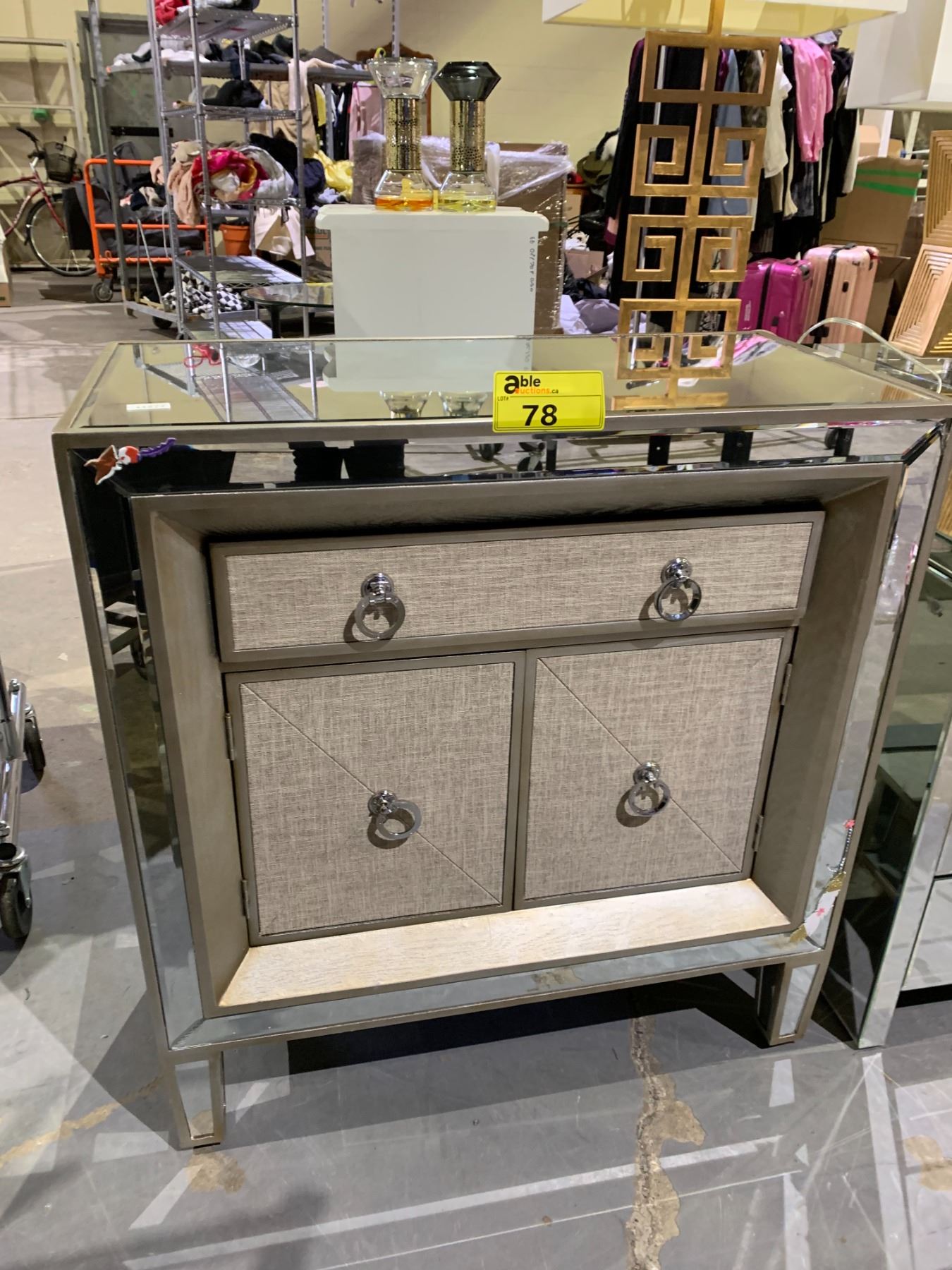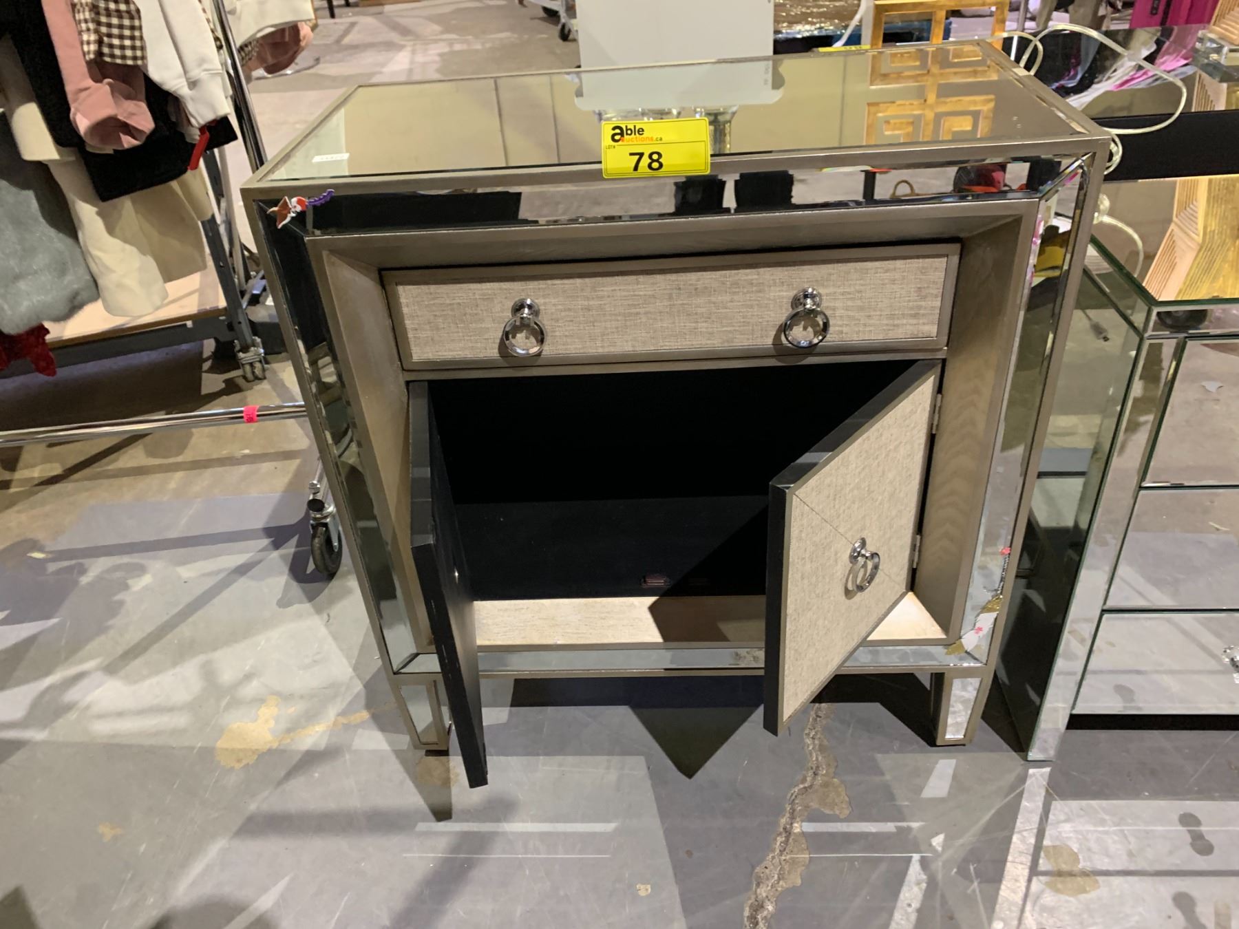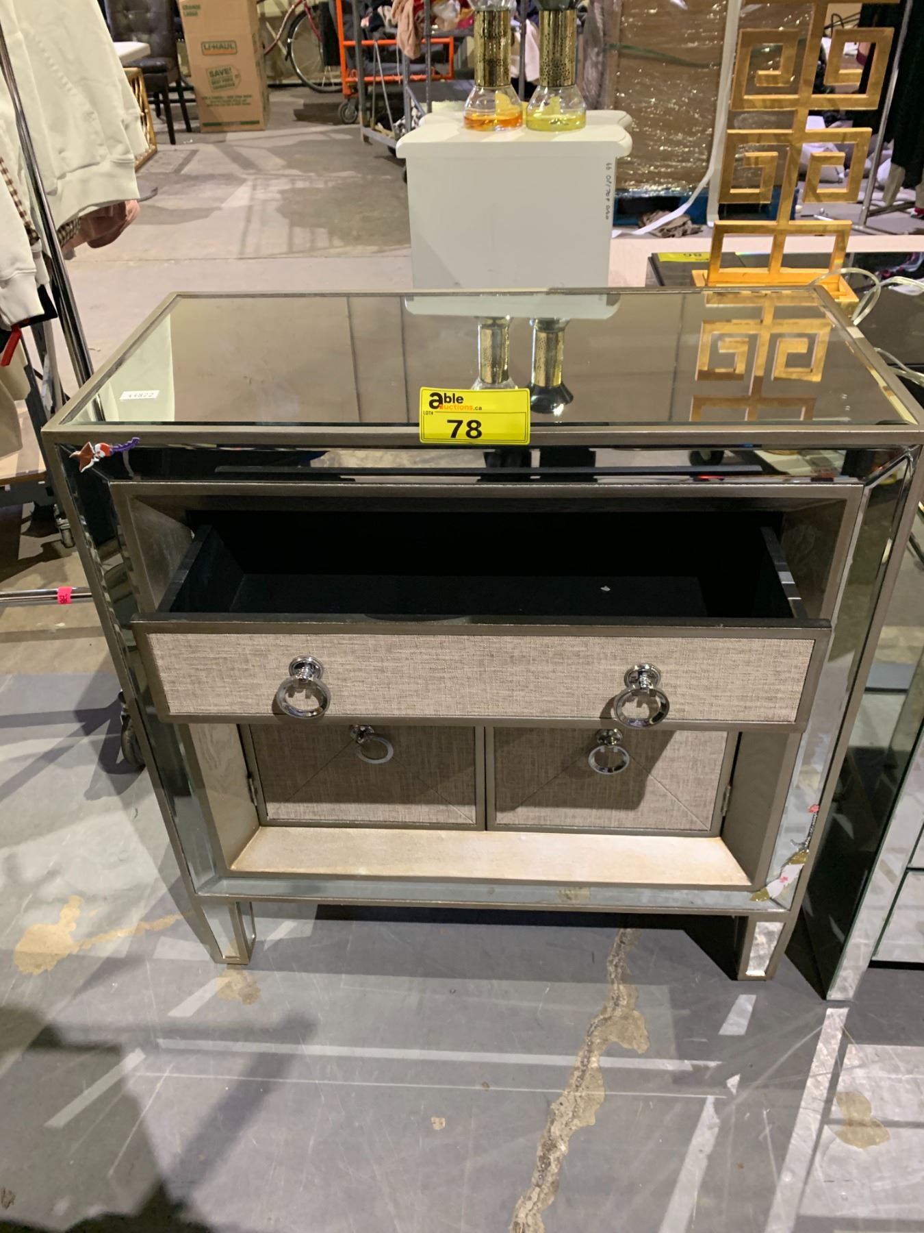MIRRORED 1 DRAWER 2 DOOR STORAGE UNIT APPROX 32 X 16 X 34"