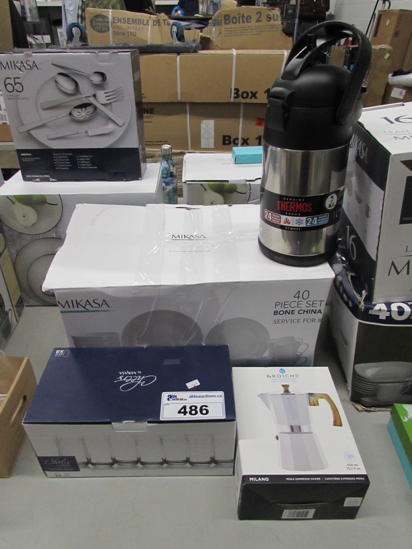 MISAKA DINNERWARE SET, STAINLESS STEEL THERMOS, EROSCHEE COFFEE MAKER, CHEERS GLASSES